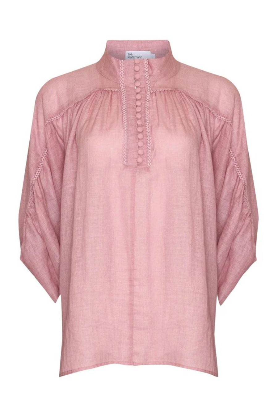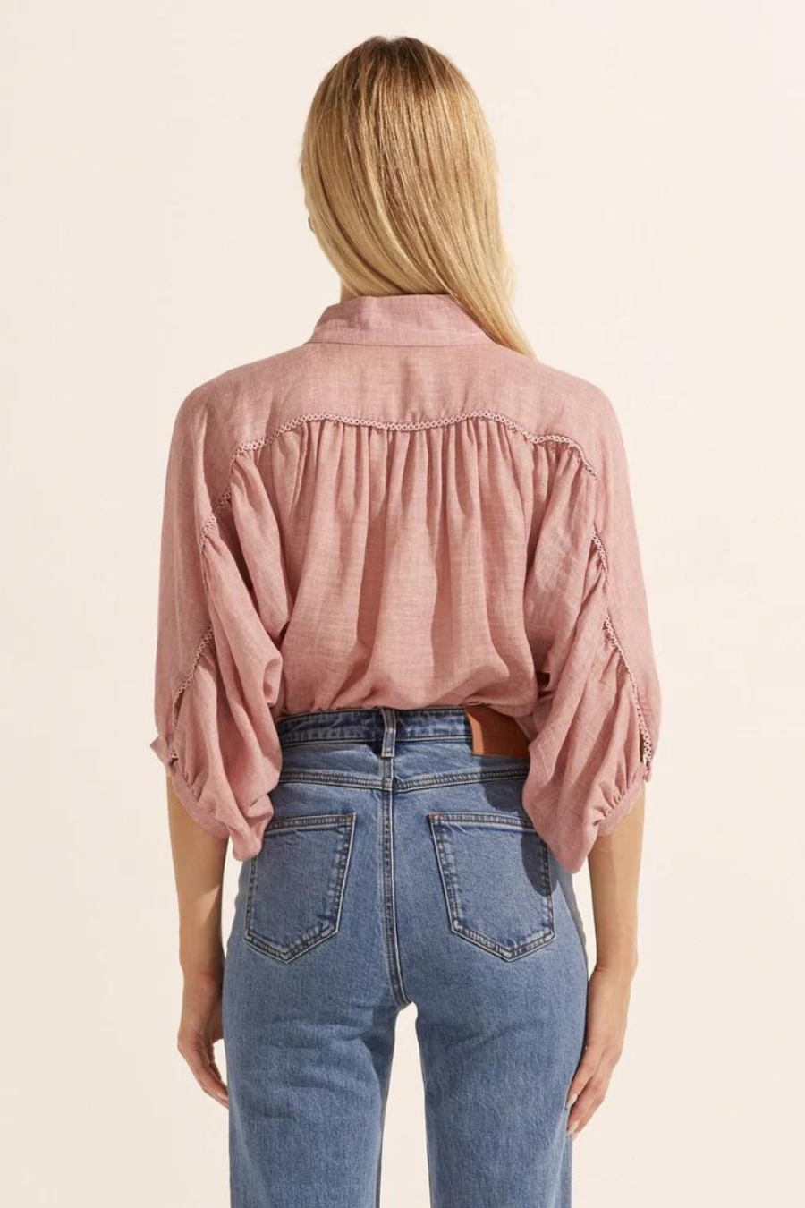 Scalloped lace trim injects a romantic notion to this modern and confident piece, crafted in a light-weight ramie the adage teams delightfully with denim or with a tailored pant.