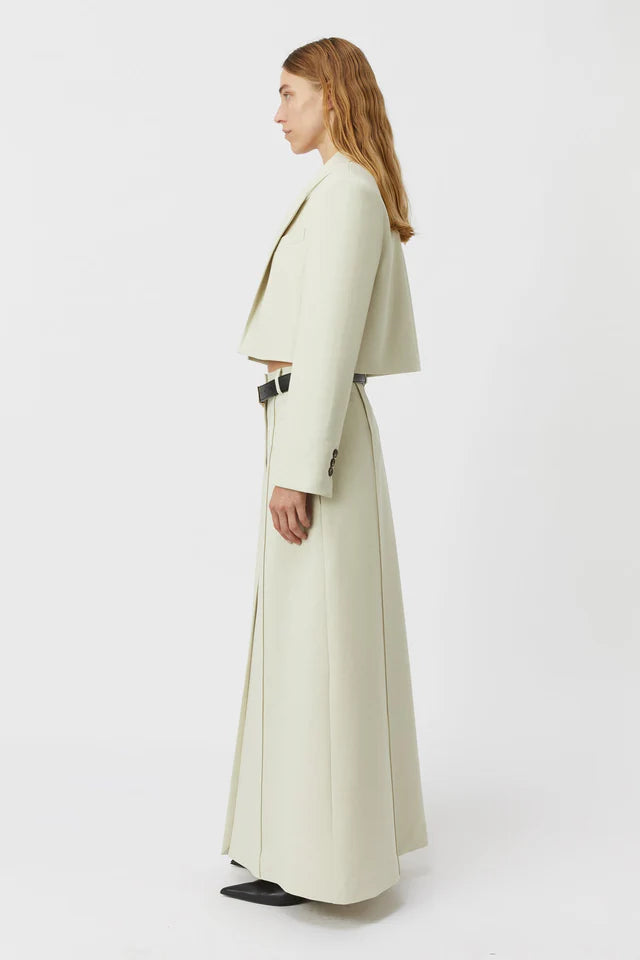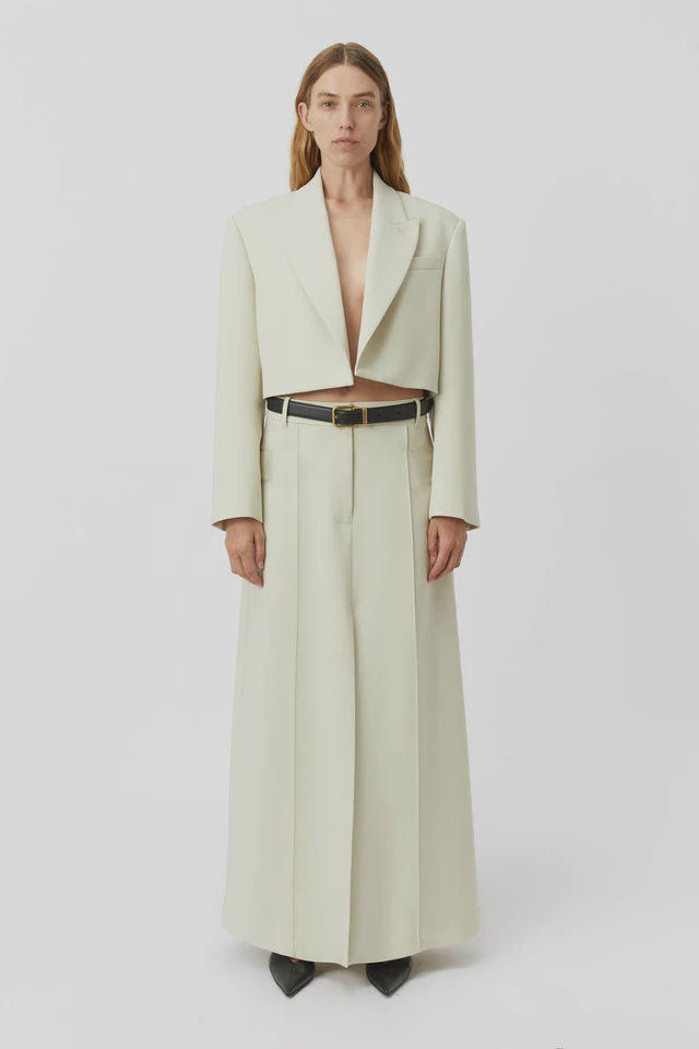 The Adica Maxi Skirt is the perfect addition to any wardrobe, featuring a tailored design in a versatile ecru hue. Sitting comfortably on the hip, this skirt boasts an A-line silhouette and a centre front split, offering a modern twist to a classic style. Perfect for any occasion, the Adica Maxi Skirt effortlessly combines timeless appeal with contemporary flair.
