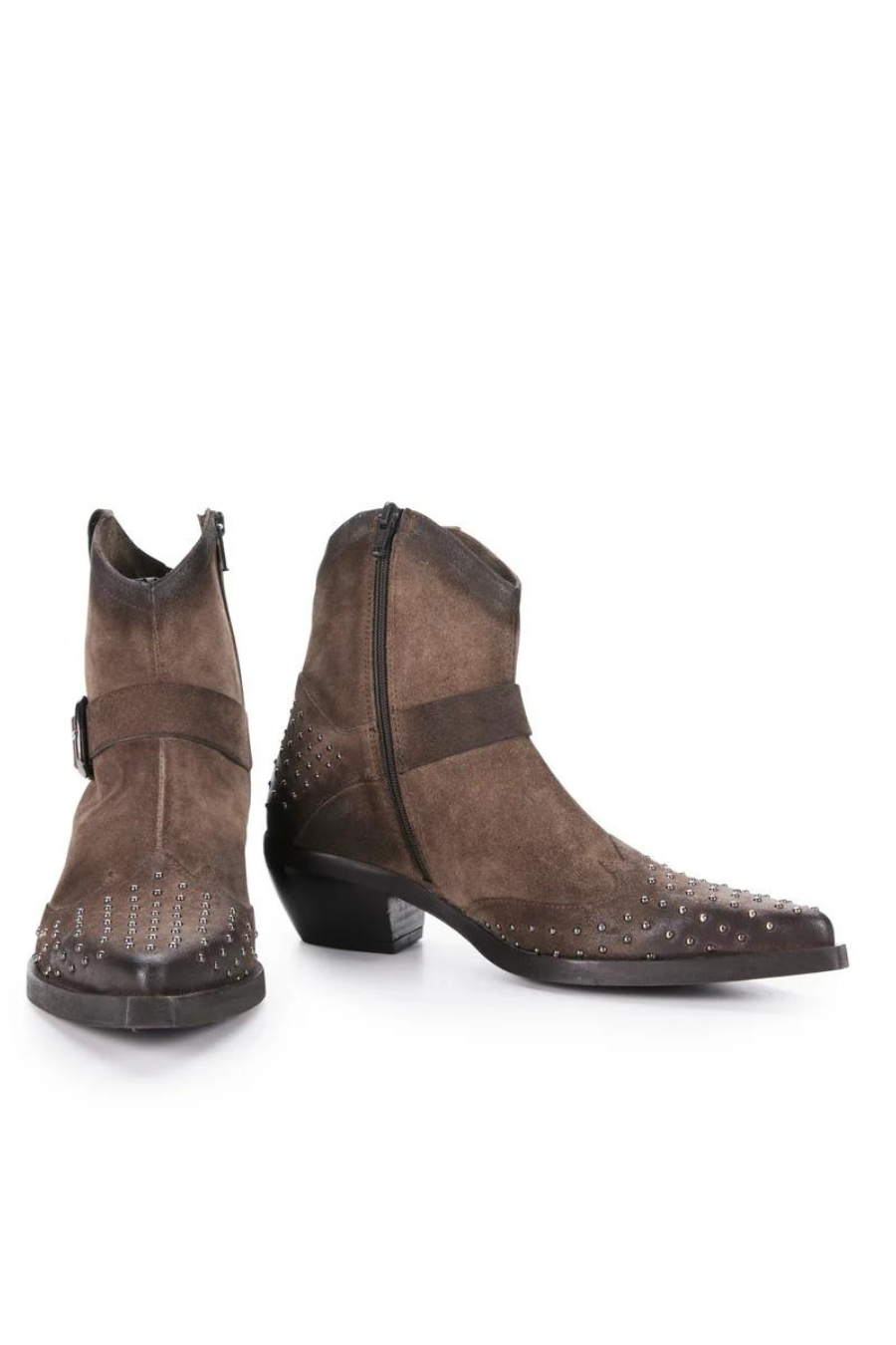 Introducing the epitome of edgy elegance: The Alamo Studded Boot. Crafted to capture the essence of rock and roll attitude, this statement footwear exudes boldness and sophistication at every step. Adorned with studded detailing on the toe and heel, it commands attention with its fierce allure.