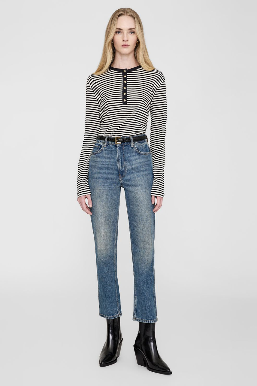 Alessia Long Sleeve Tee Cream And Black Stripe