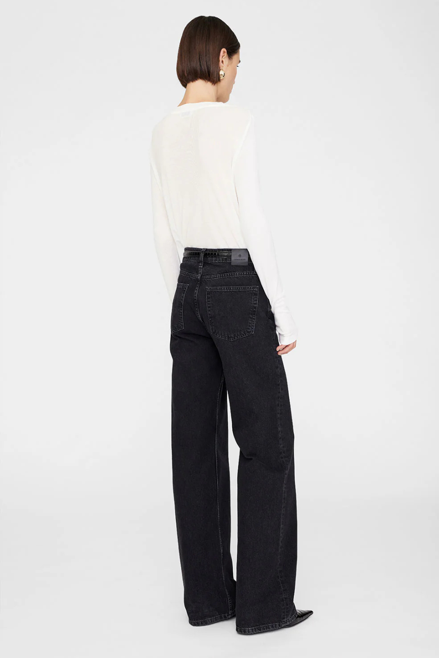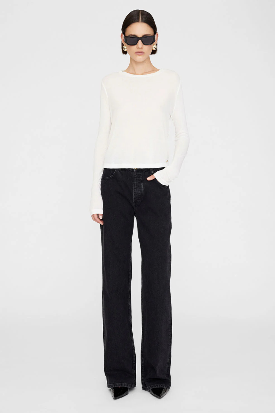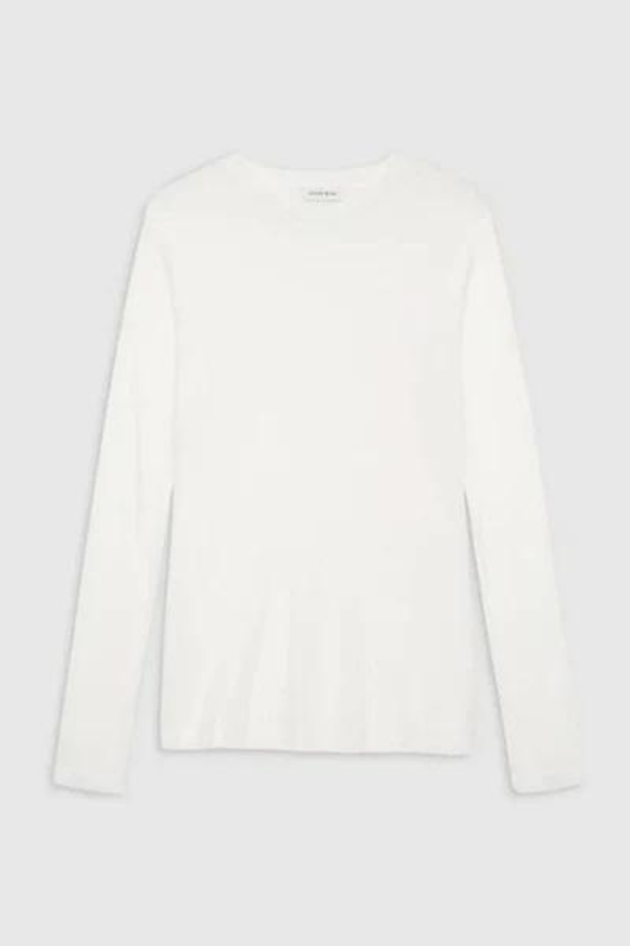 Classic fit top, made from a fine modal-cashmere blend knit. Featuring a round neckline, slightly dropped shoulders, long sleeves, and small AB monogram charm at hem.