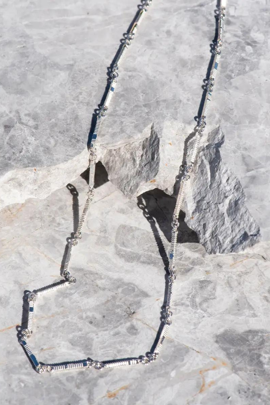 Slightly 70s, slightly architectural, this hand crafted chain is made to layer. Each individual piece is joined with jump rings, giving it a fluid and fun movement.