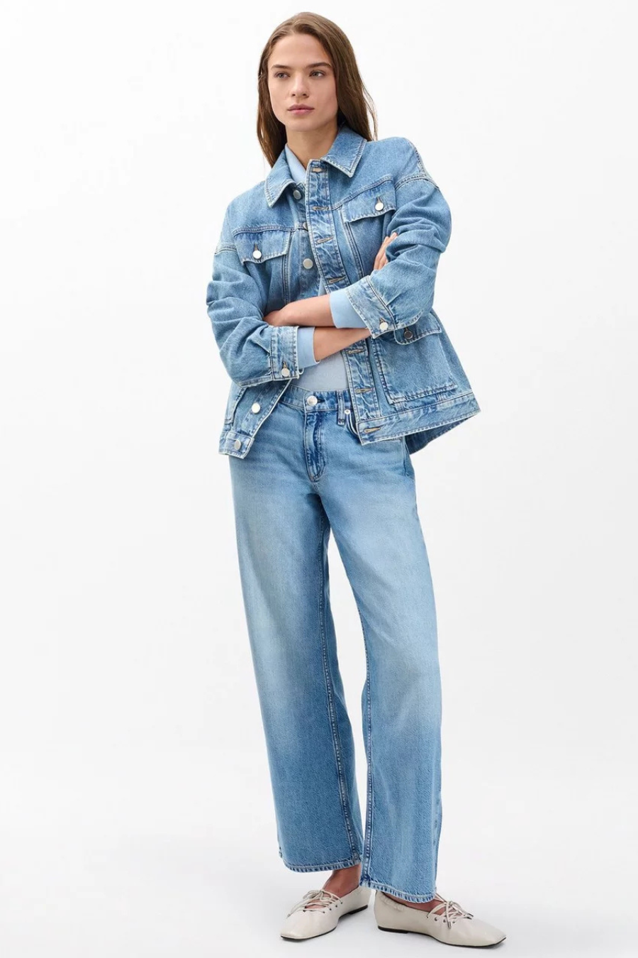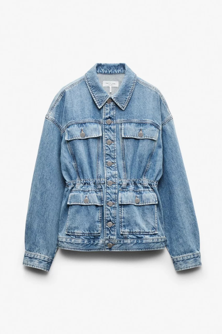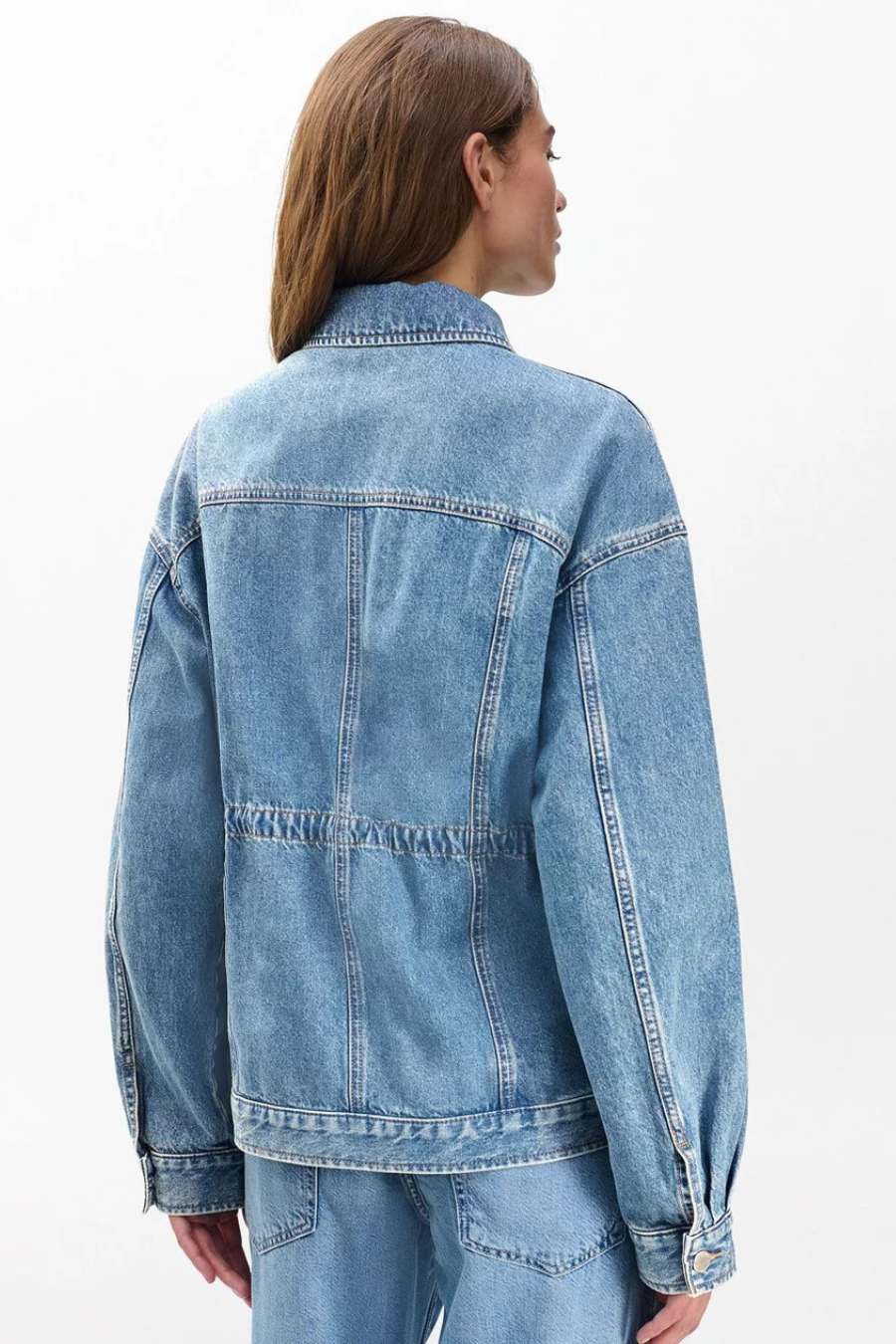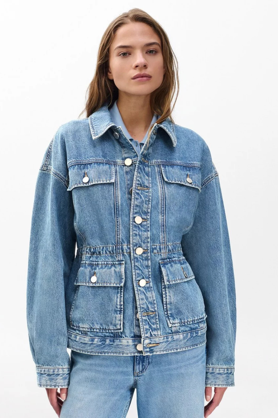 Shape shift. This twist on a classic field jacket is crafted from our Lightweight Rigid denim, which provides structure but breaks in over time for a soft and comfortable feel. Cinch the waist with the hidden drawcord to play with its proportions. In Ithaca, a light-medium indigo wash. Wear over tailored pants or with the matching Shea Straight Jeans for a modern twist on double denim.