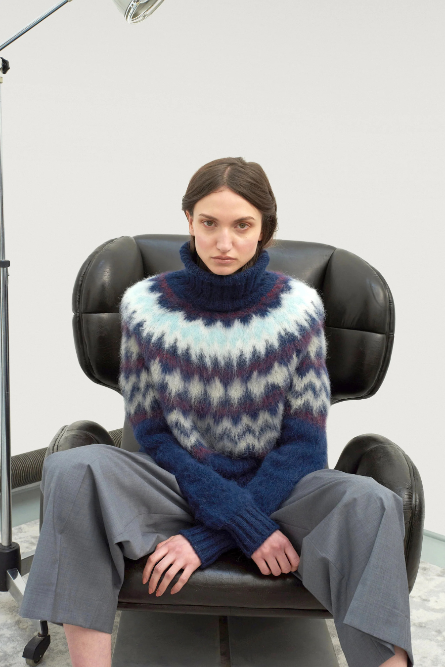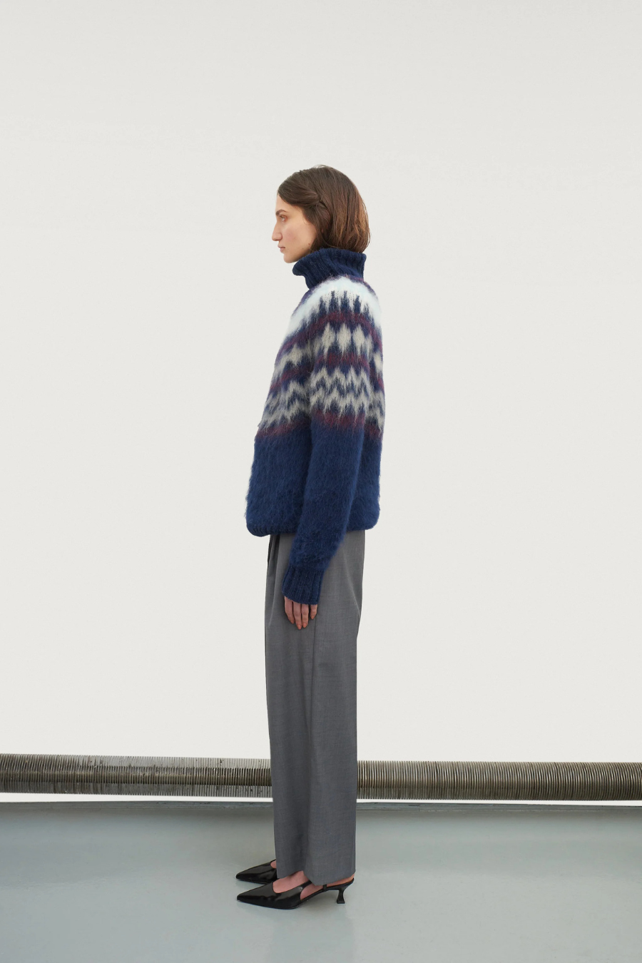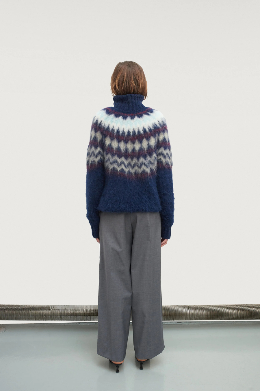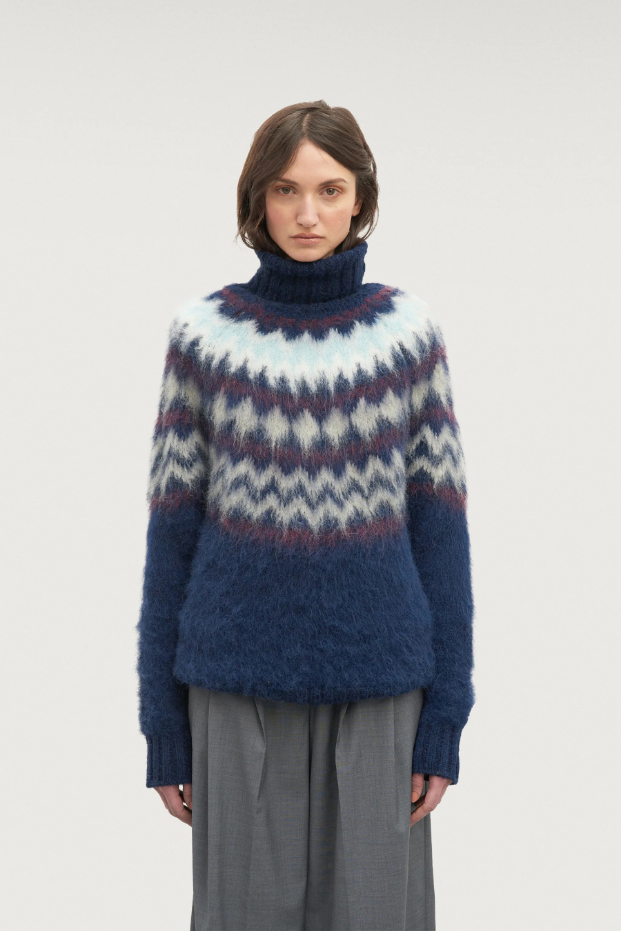 Brushed sweater with mock-neck and alpine design.