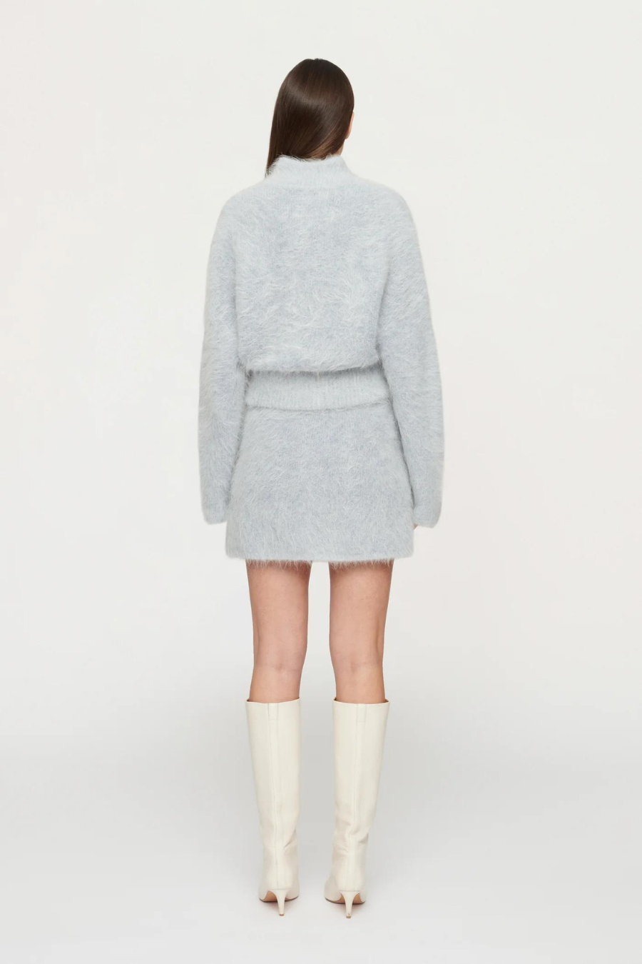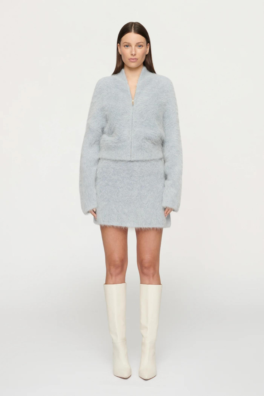 The Archer Fluffy Skirt is a modern knit mini skirt. Beautifully crafted in a soft alpaca blend yarn in a cloud colourway, it has a warm, soft hand feel and a brushed surface texture. Its silhouette is elegantly a-line, complemented by a flawlessly finished cast-off hem and a snug tubular waistband with encased elastic. Elevate your look by pairing it with the Archer Fluffy Bomber for a matching set.