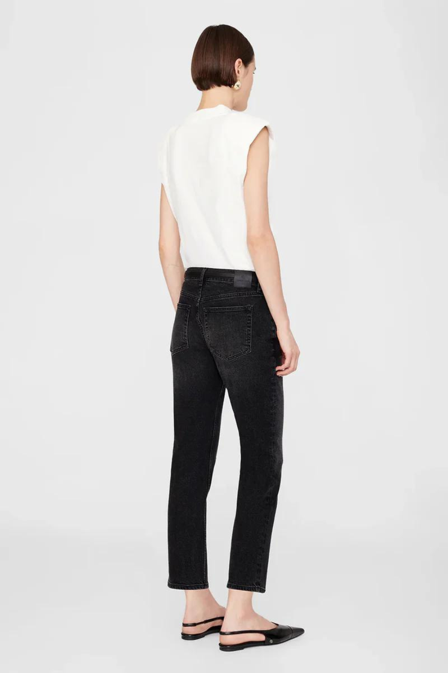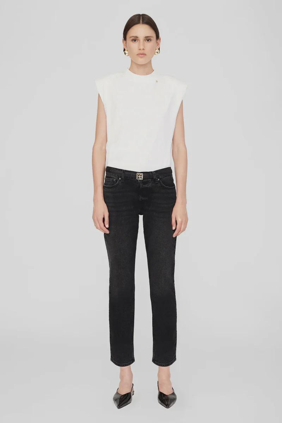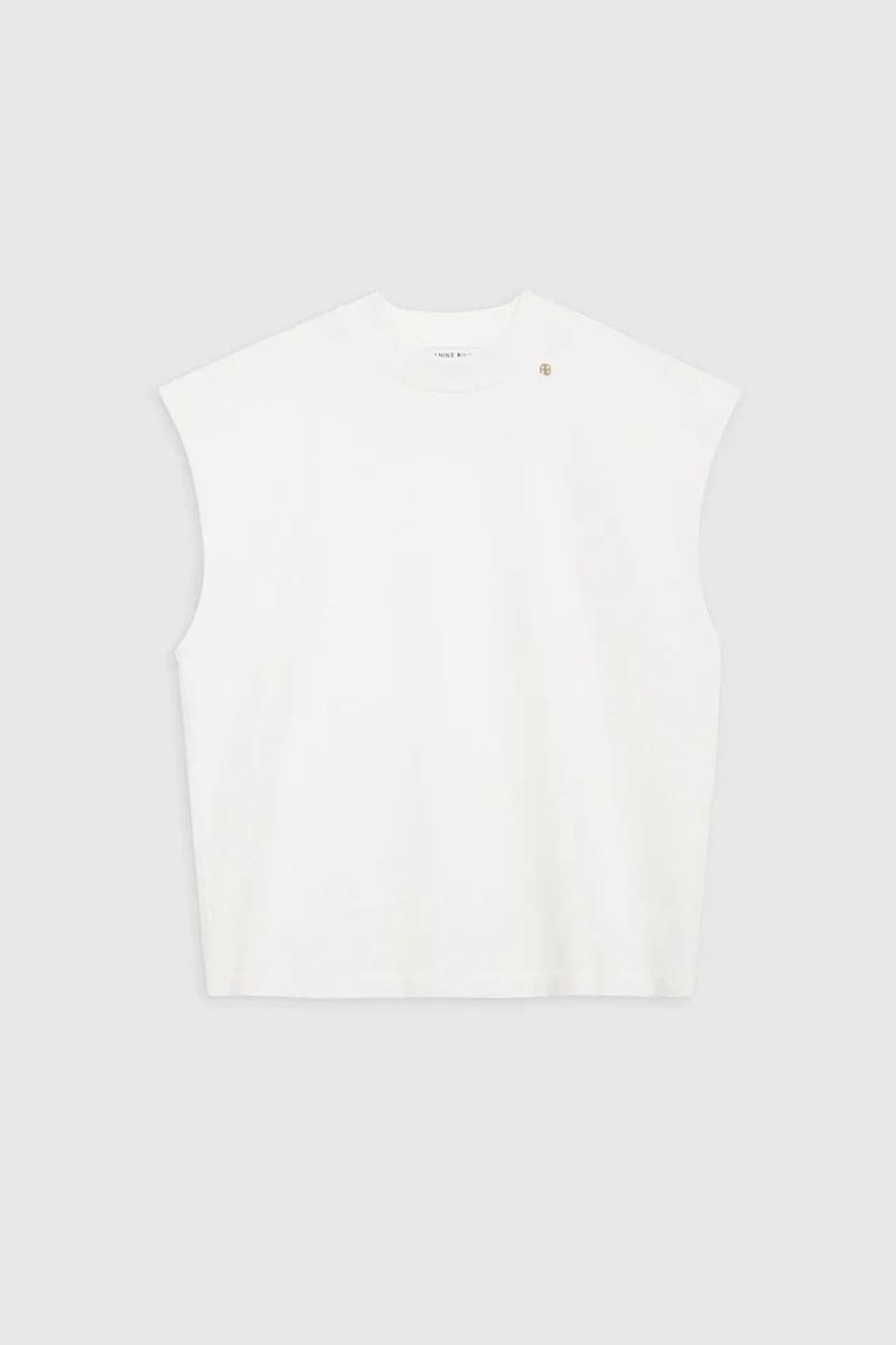 The Auburn Tee is an elevated basic made from heavyweight 100% cotton jersey with soft structure. Its strong silhouette features broad shoulders with removable shoulder pads, a slightly tapered hem, and clean-edged armholes. Finished with a small hand-tacked ANINE BING monogram charm at the neck.