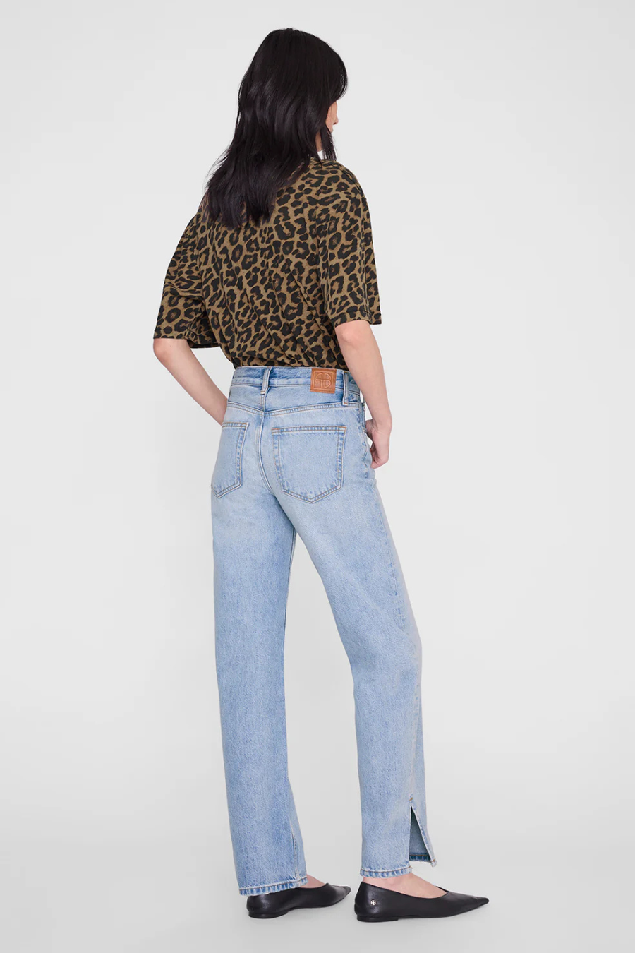 The Avi Tee is an oversized, boxy T-shirt constructed from lightweight 100% cotton jersey in an all-over black and brown leopard print.