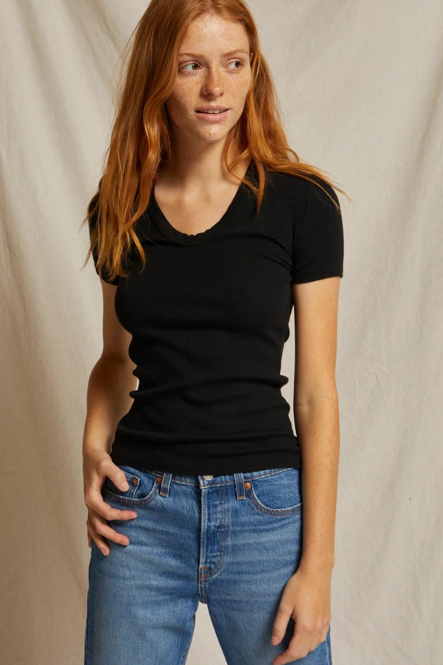 Avril Short Sleeve Rib U Neck Black