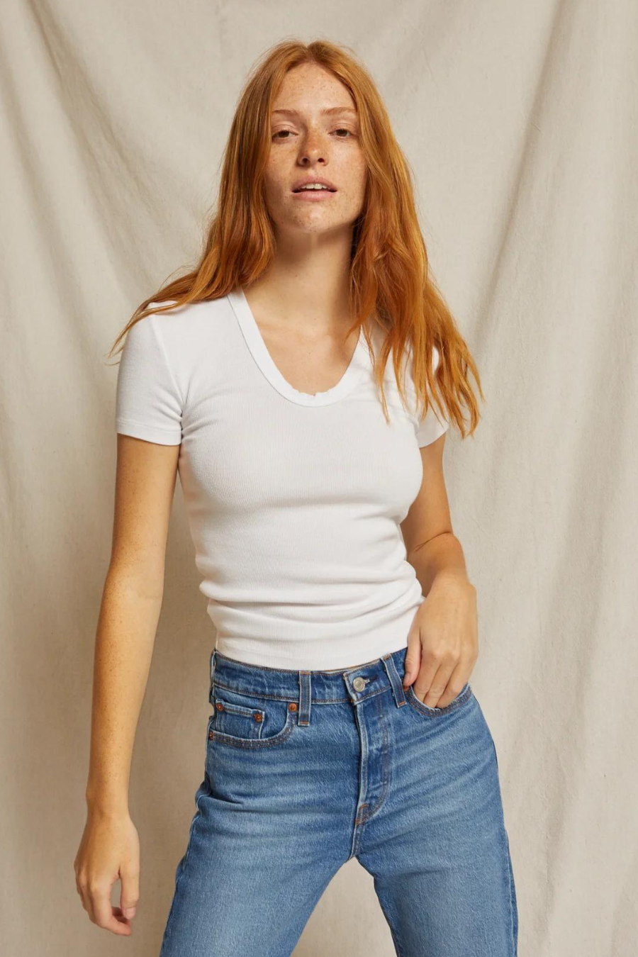 Cut in our slinky cotton rib, this new tee is everything you need to build your wardrobe this fall. a blend of cotton/spandex allows the fabric to hug the right places while allowing a natural drape. it truly takes you from day to night.