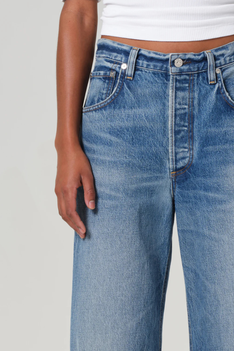 The Ayla Raw Hem Crop, inspired by a reworked vintage silhouette, features a slightly relaxed but flattering top block that transitions into a roomy leg with a raw hem finish. Perfect for warmer days, this cropped denim is crafted from 100% regenerative cotton, offering both comfort and sustainability in a timeless, versatile style. Style it effortlessly with a tucked-in blouse and sandals for a relaxed daytime look, or elevate it with a sleek heel and tailored blazer for an elevated take on casual chic.