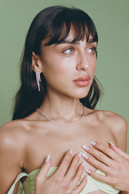 Introducing the highly anticipated, Baby Celestial Necklace. Featuring a cubic zirconia band with an elevated clasp. The Baby Celestial Necklace is our modern take on the Tennis Necklace.