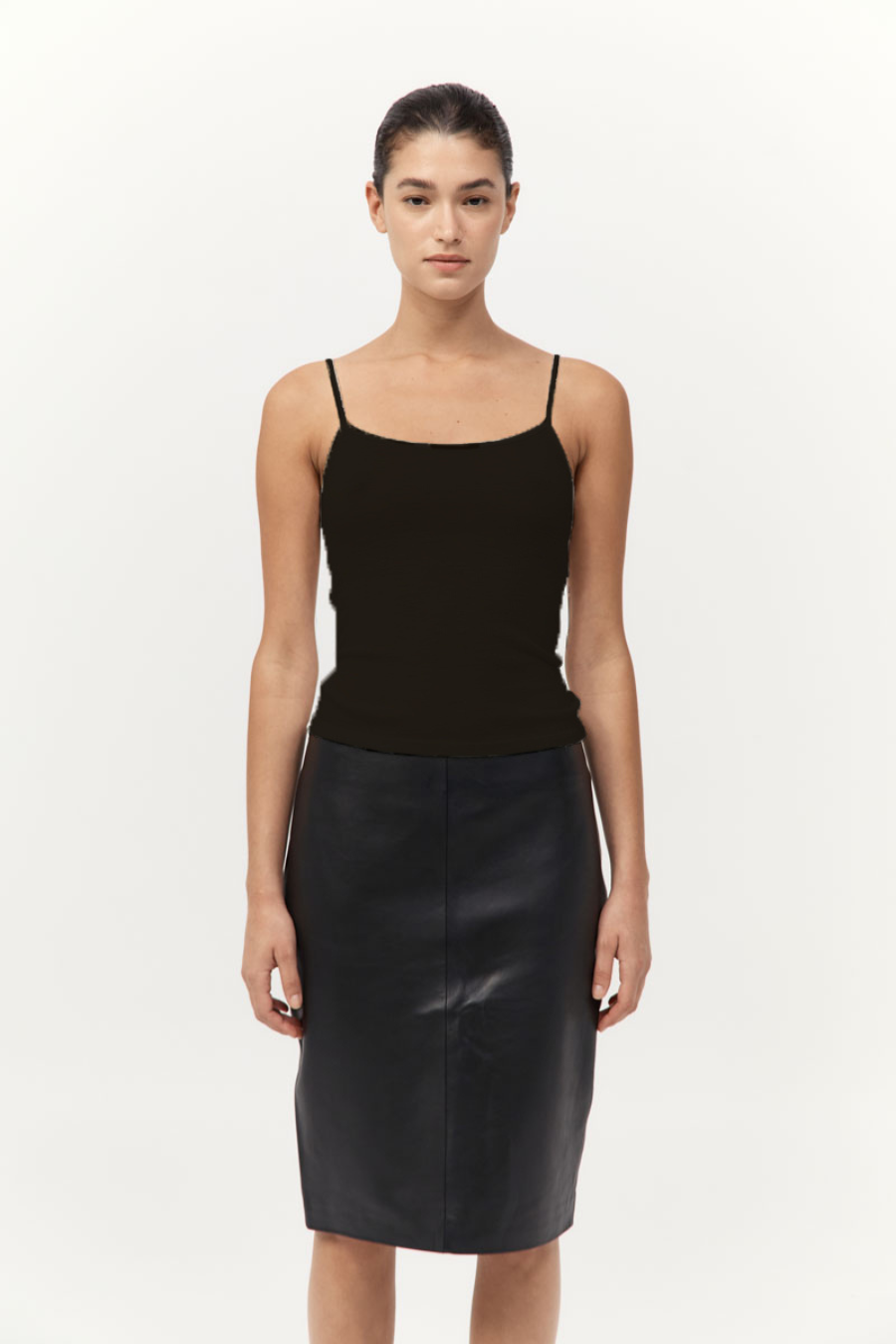 The Baby Wool Cami, crafted from 100% merino wool, features a fine ribbed texture, scooped neckline, skinny straps, and a subtly sheer finish. Lightweight and breathable, the Baby Wool Cami is a versatile layering essential made for everyday wear.