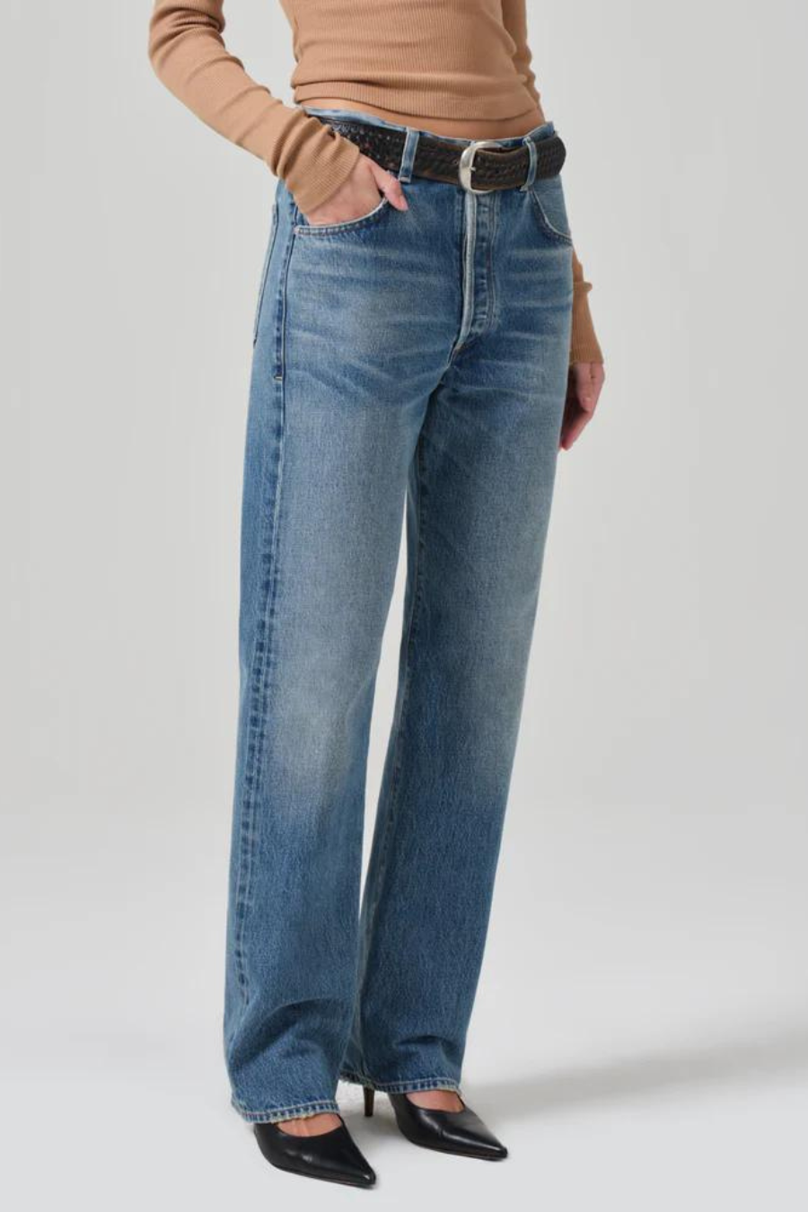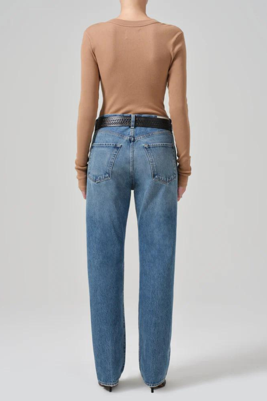 This vintage inspired straight is designed with a high rise, relaxed, classic straight leg and elongated inseam. Crafted from rigid denim.