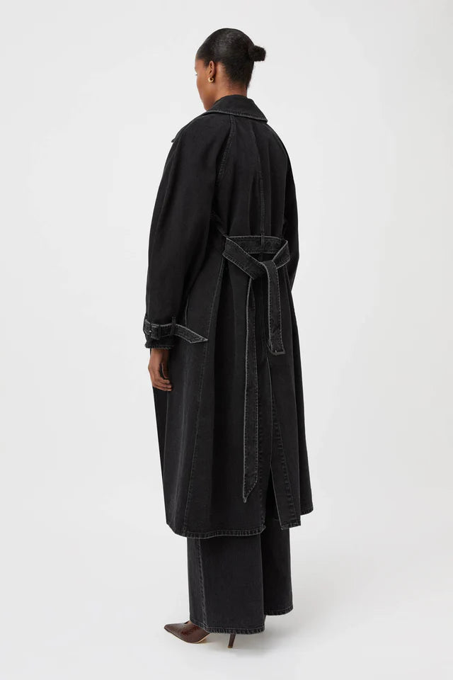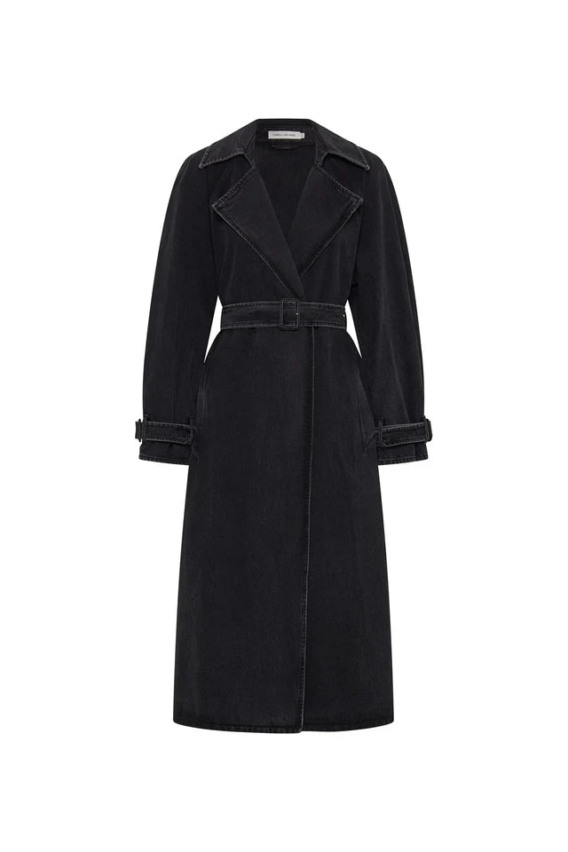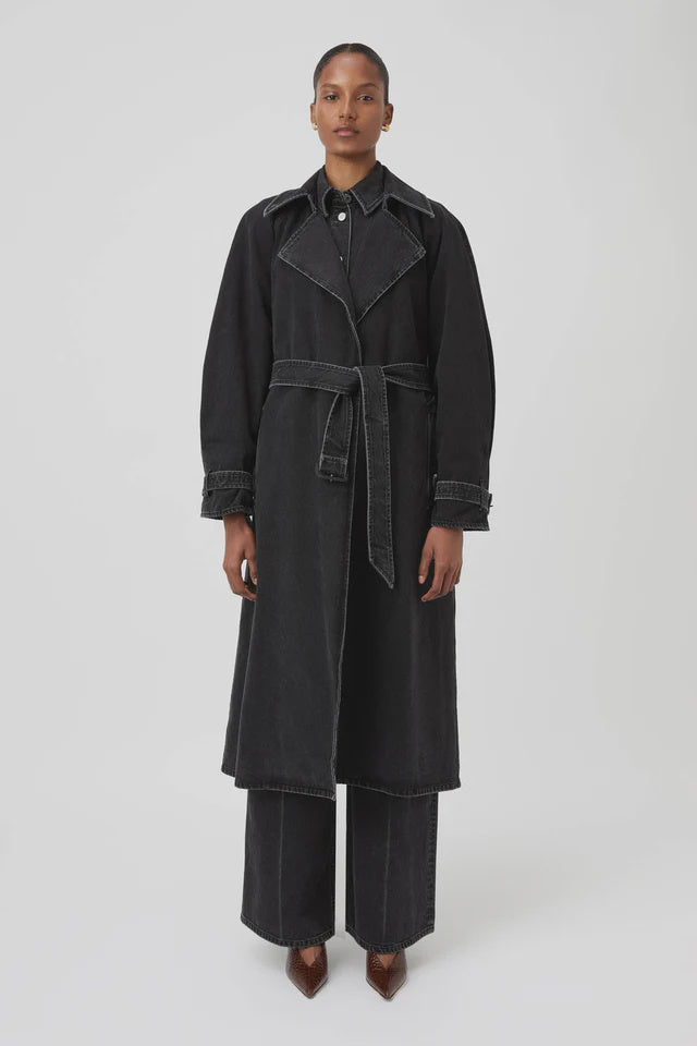 The Bea Denim Trench perfectly blends classic trench coat notions with modern fabrication, making it a must-have for any fashion-forward wardrobe. Crafted from premium cotton denim and designed with impeccable attention to detail, this coat boasts an oversized silhouette and exaggerated shoulder pads. At the same time, the belted waist creates a timeless elegance that sets this coat apart.