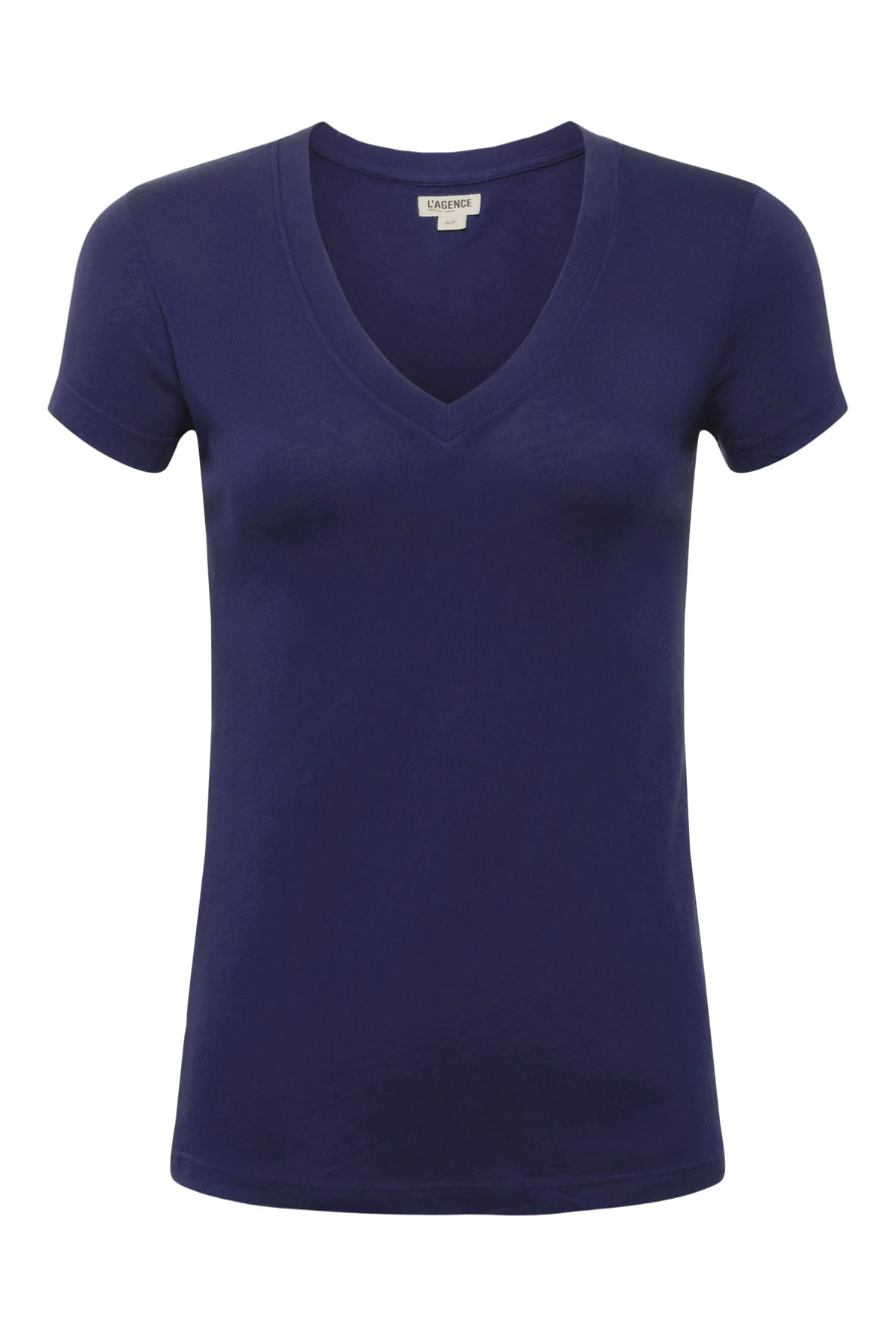 A quintessential v-neck tee in deep navy. Classic v-neckline, clean short sleeves, and a slim, yet effortless fit. Becca is a wardrobe staple, and can be worn alone or as the perfect base layer. Lightweight, super-soft, and 100% Cotton.