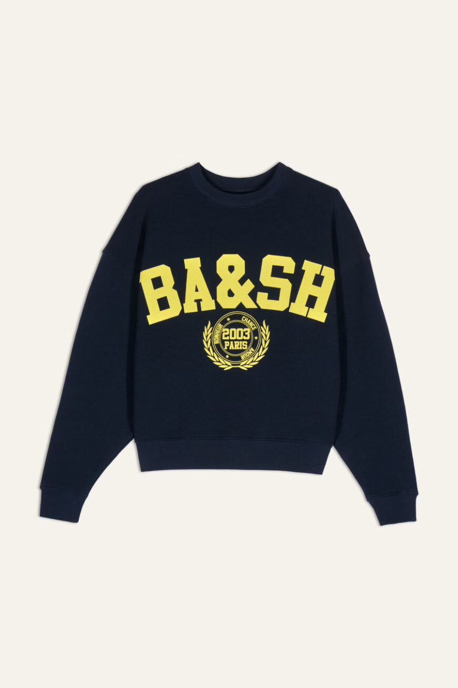 The Benjamin sweatshirt is inspired by menswear. Loose, comfortable and warm, it's cosy to snuggle up in wherever you are. This piece has long sleeves, a round neck and slightly drop armholes. It looks like you've borrowed it from your brother and the print is inspired by US universities. We love the fabric quality and softness, which makes it feel like a caress. Wear with a short skirt to combine styles.