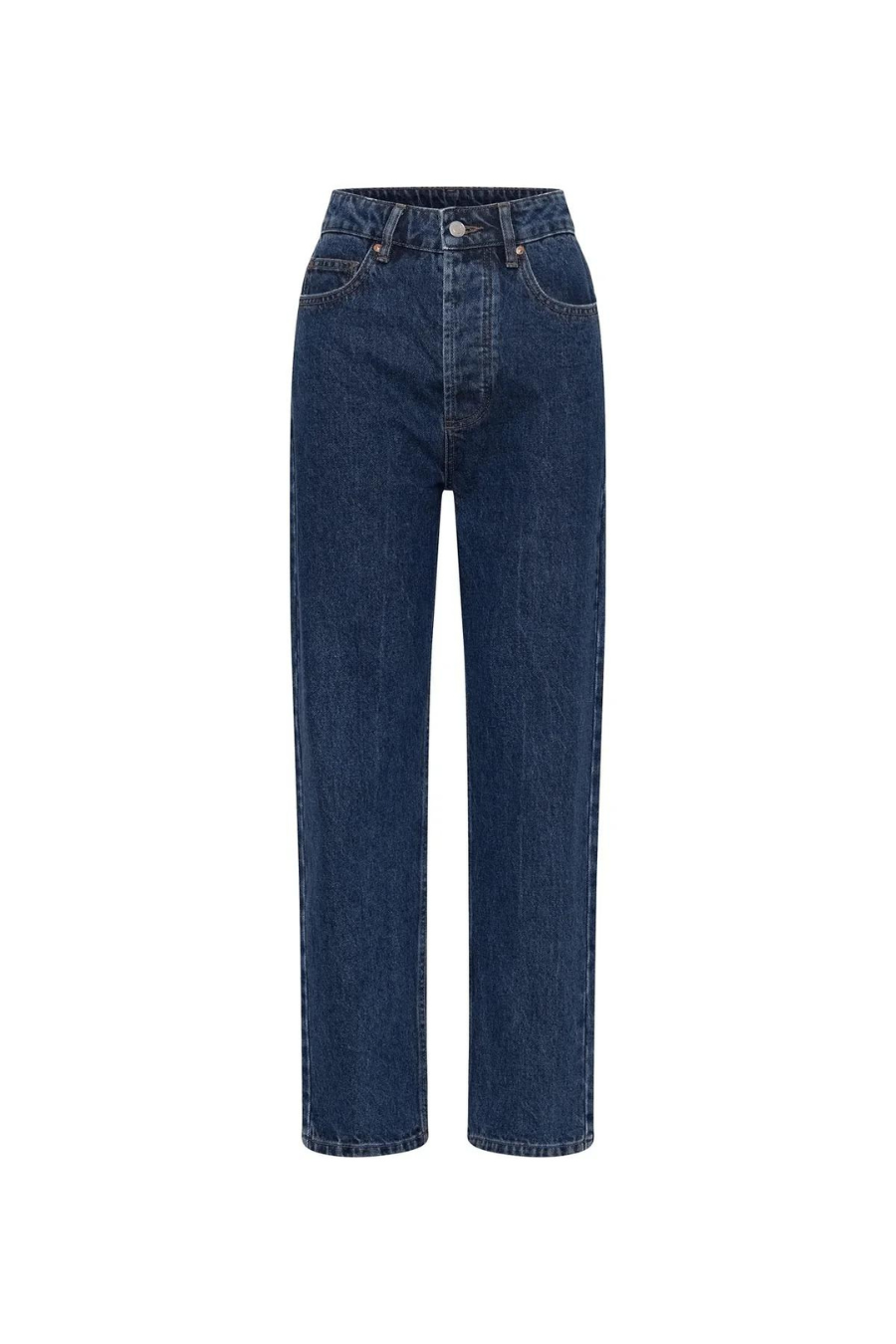 This is your classic blue denim jeans. With a high waist and semi-fitted straight cropped leg, it's a go-to for daily wear.