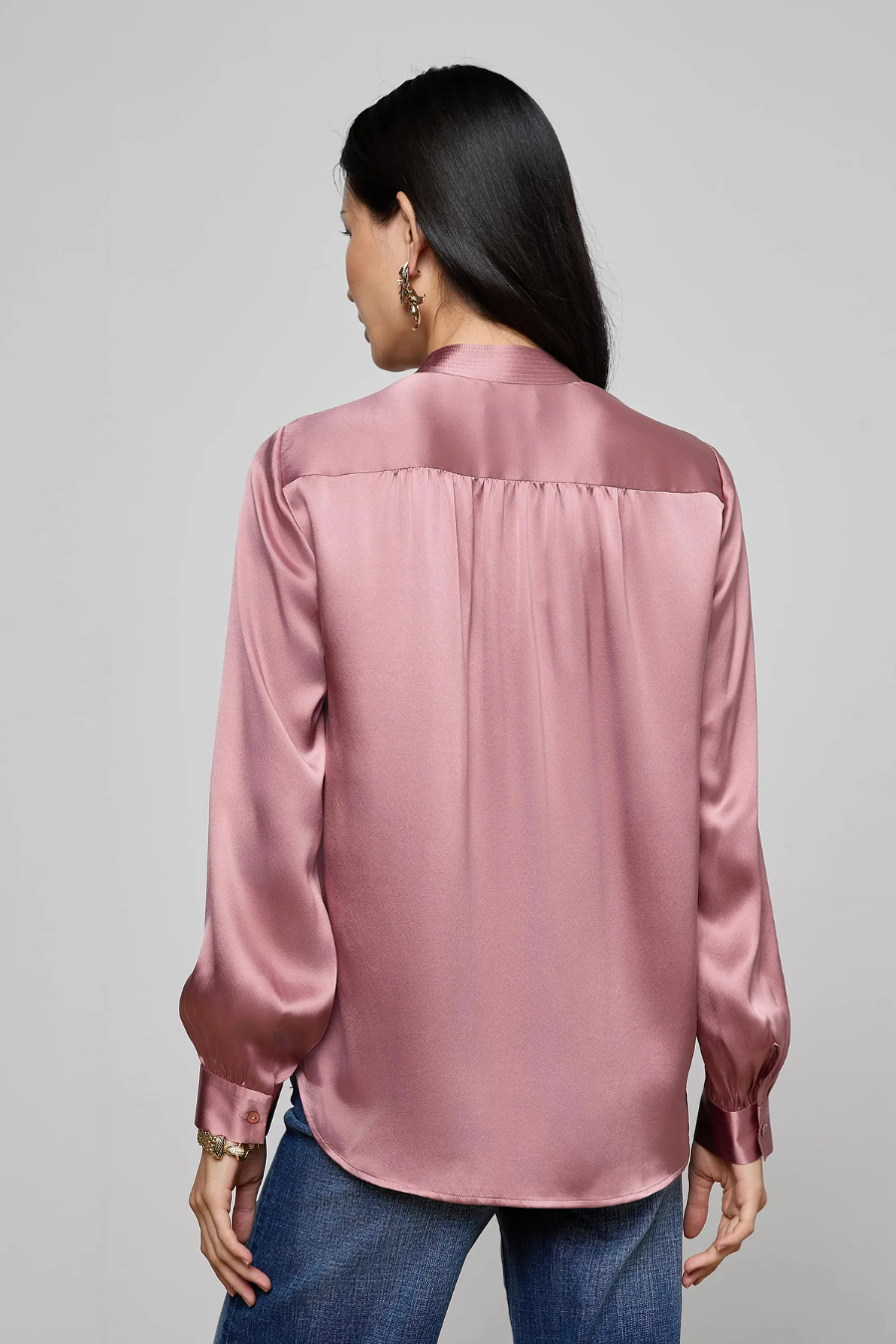 Bianca Band Collar Blouse Mauve Rose