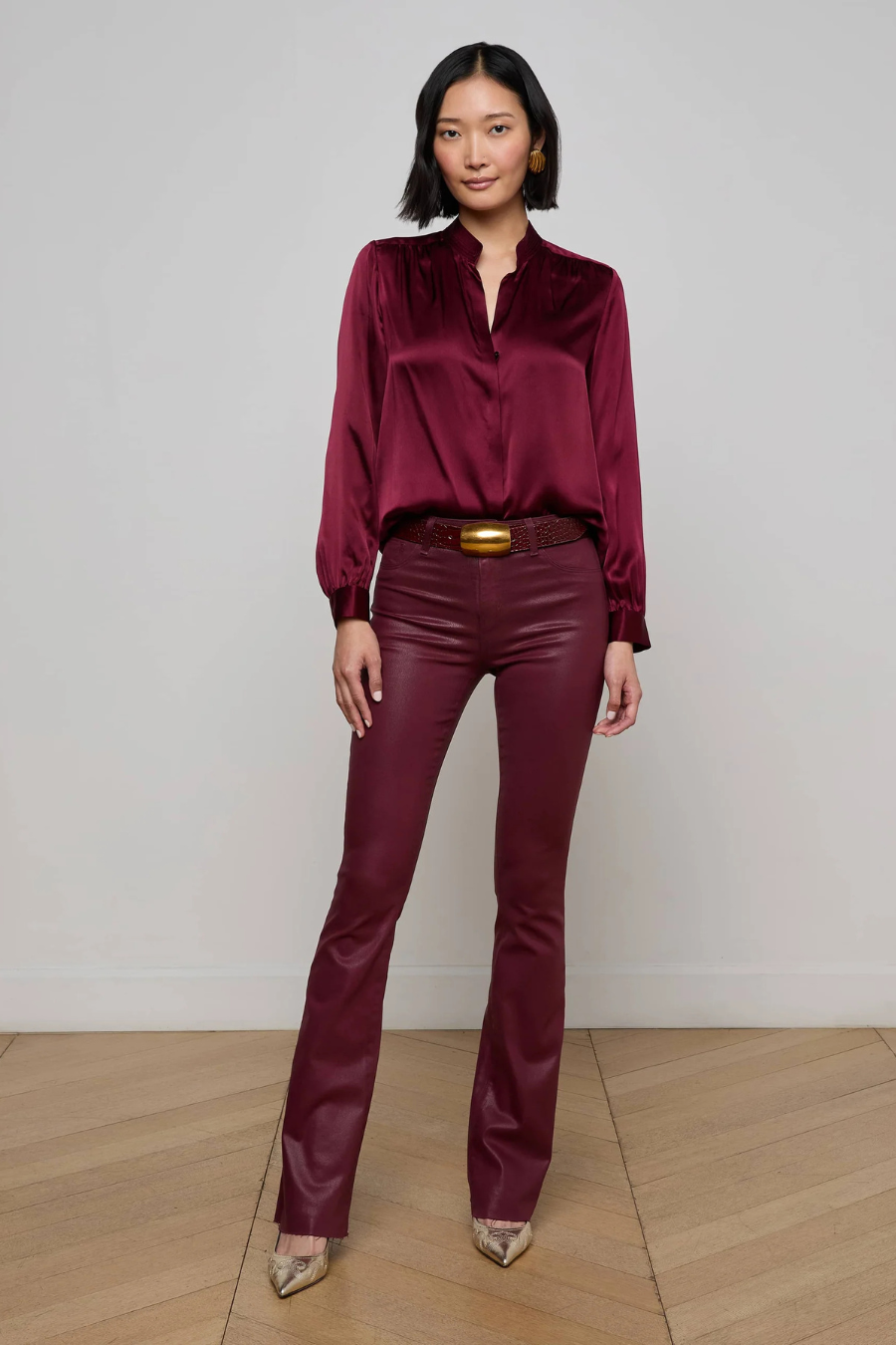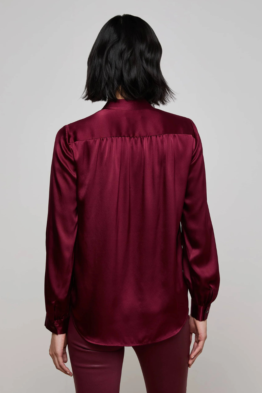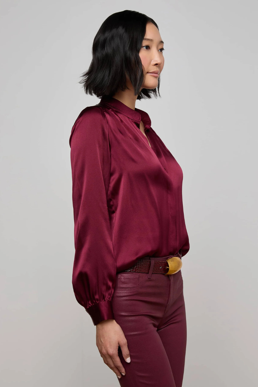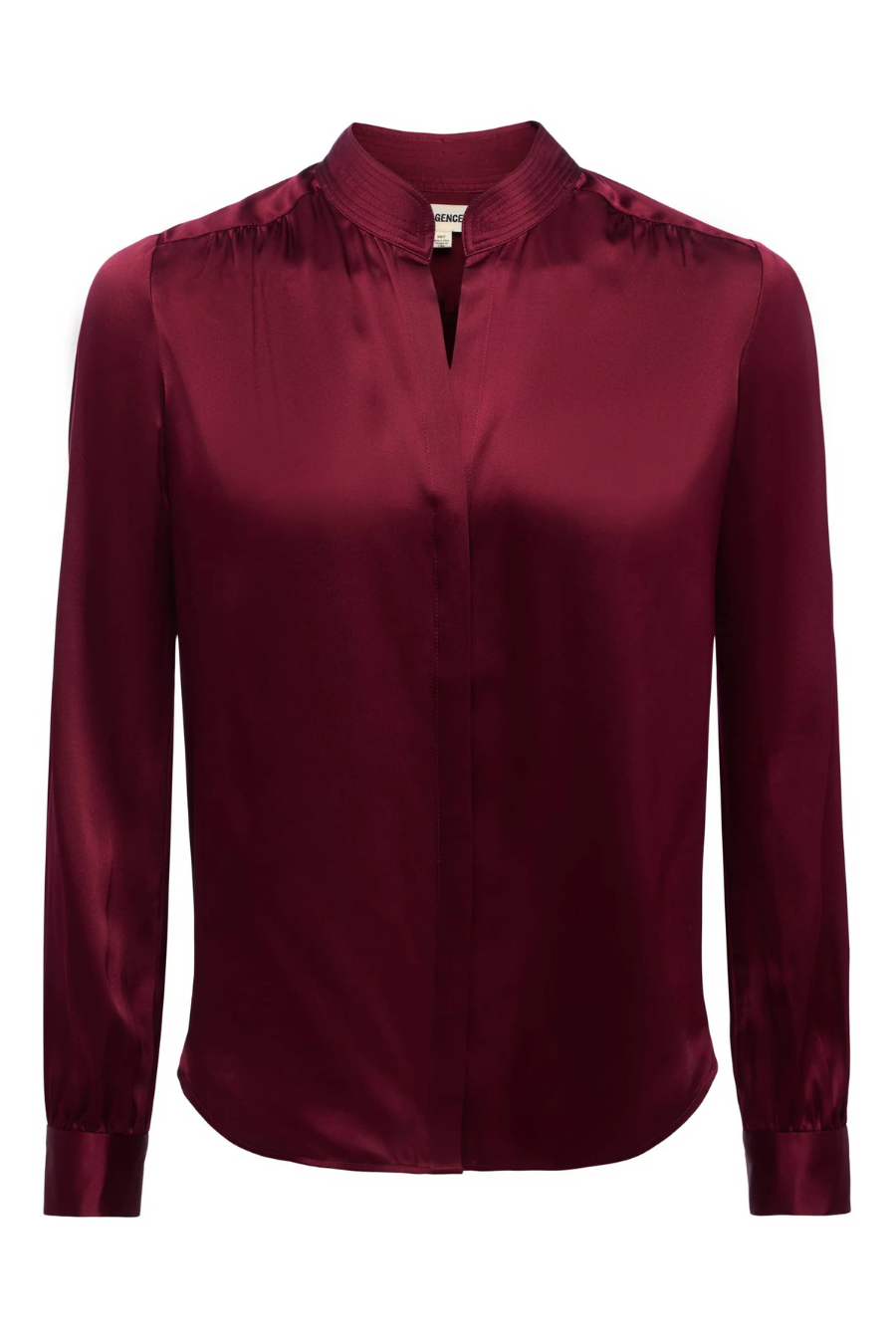 Defined by impeccable craftsmanship, soft gathers, and a relaxed silhouette, the Bianca is a timeless silk blouse that belongs in every wardrobe. Now in dark port.