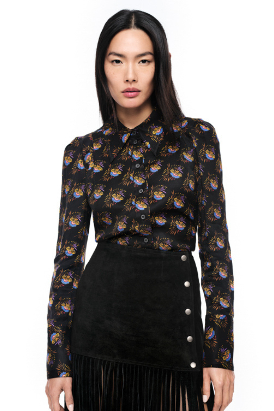 Box Pleat Shirt Black Floral