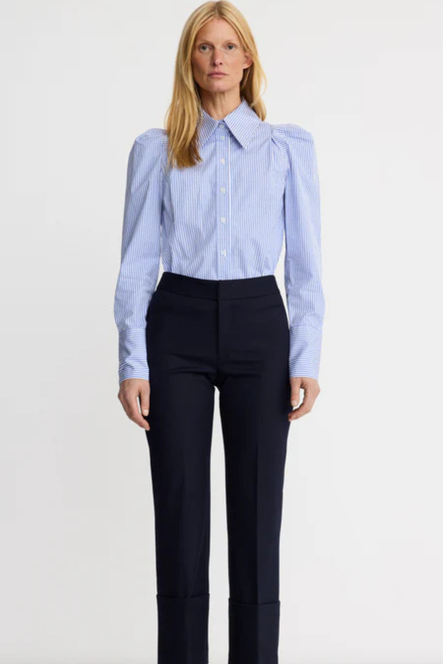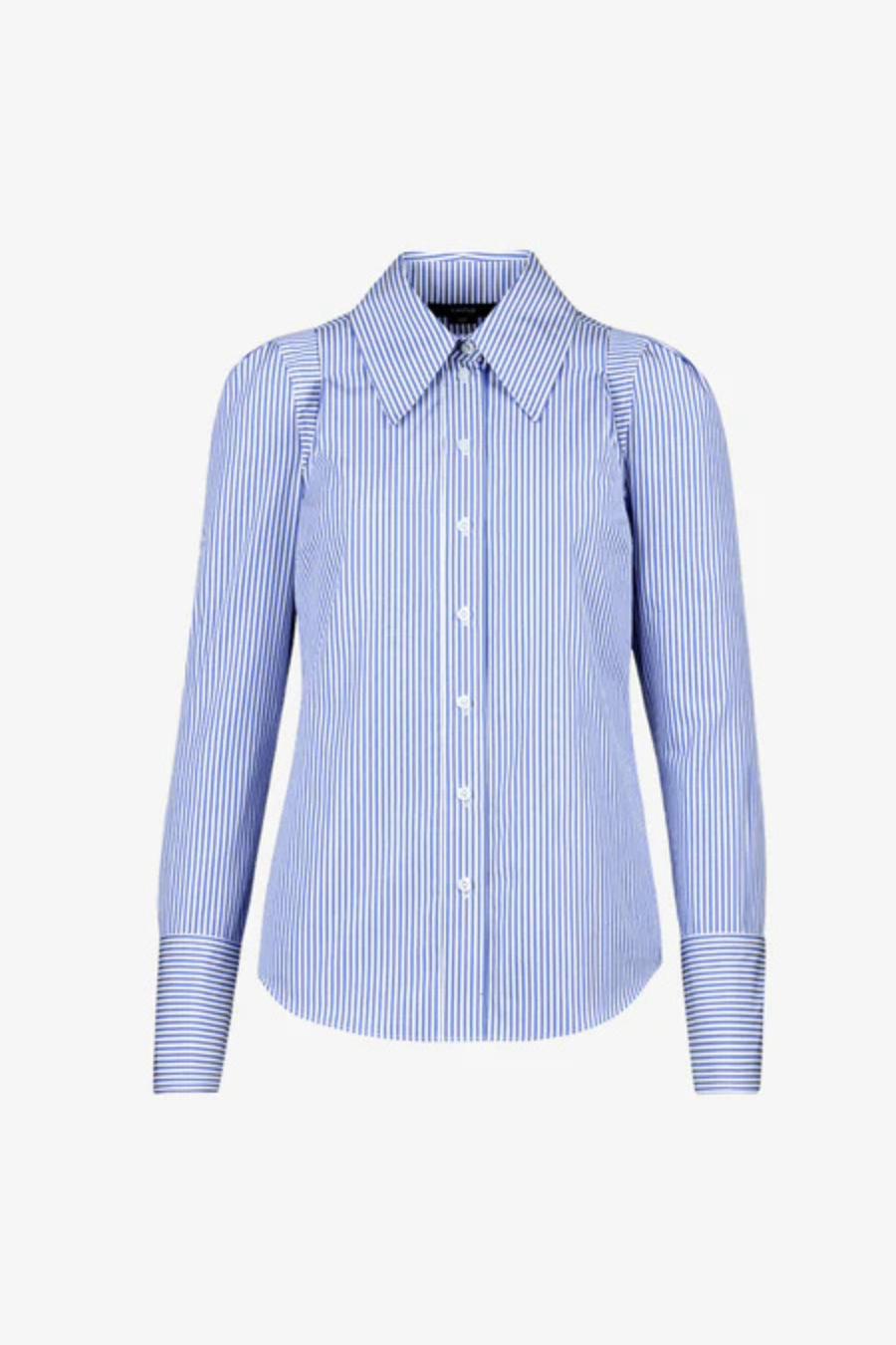 Moderately tailored, this modern take on a classic button-down features pleated shoulders and an exaggerated point collar. This garment fits true to size, take your usual size.