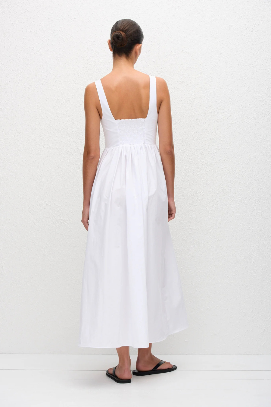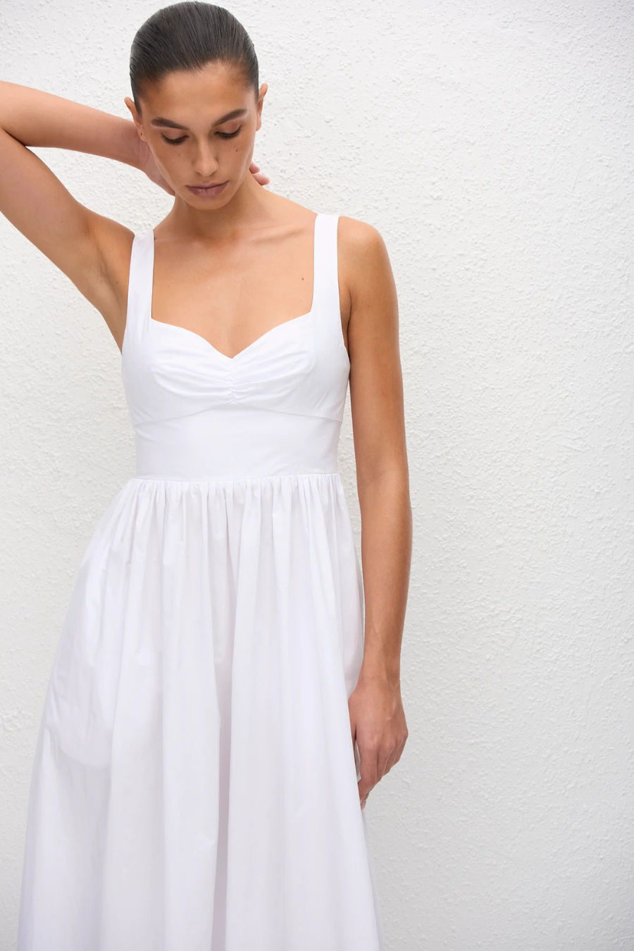 Introducing the Bralette Midi Dress, a new pull-on dress silhouette that features a sweetheart neckline, fitted bodice and a shirred elastic back panel detail. The full gathered skirt conceals in-seam pockets and adds to the elevated hourglass silhouette. Wear for your next summer occasion with your favourite sandals.