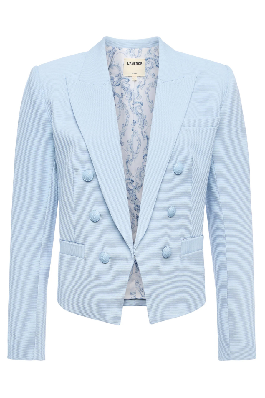 The bestselling open-front Brooke features a flattering tapered fit. This double-breasted blazer is now back in light blue.