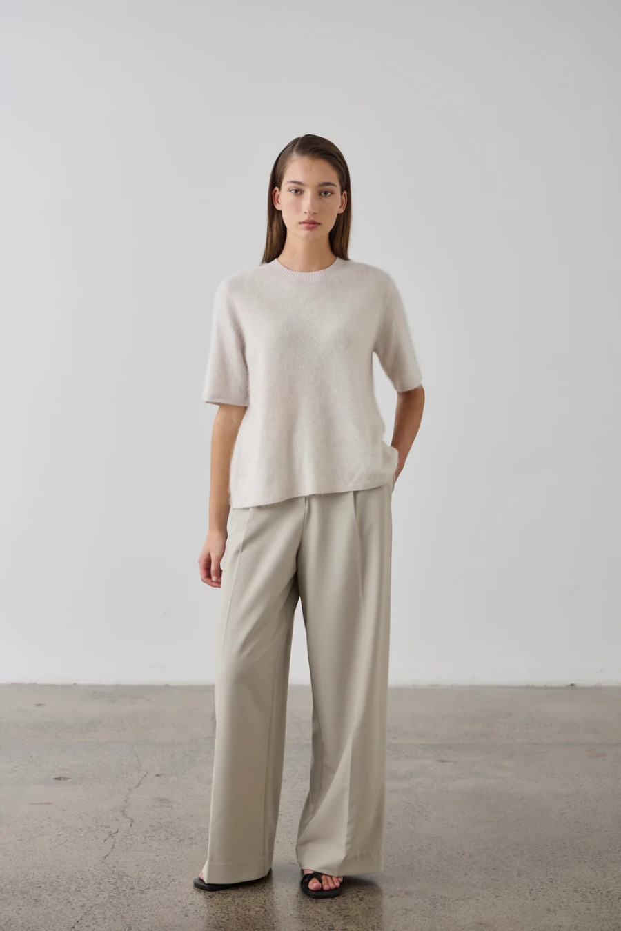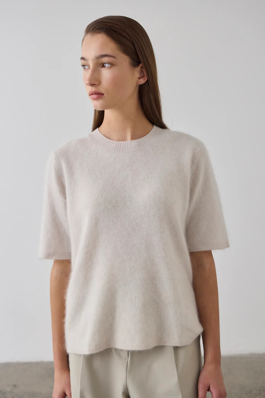 The classic T-shirt reimagined in luxuriously soft, lightweight brushed cashmere with a beautifully fluffy texture. Designed for effortless wear, it features a relaxed fit, round neckline, and elongated T-shirt sleeves, falling to a mid-hip length allowing for easy wear over favourite trousers or skirts, or a simple tuck.