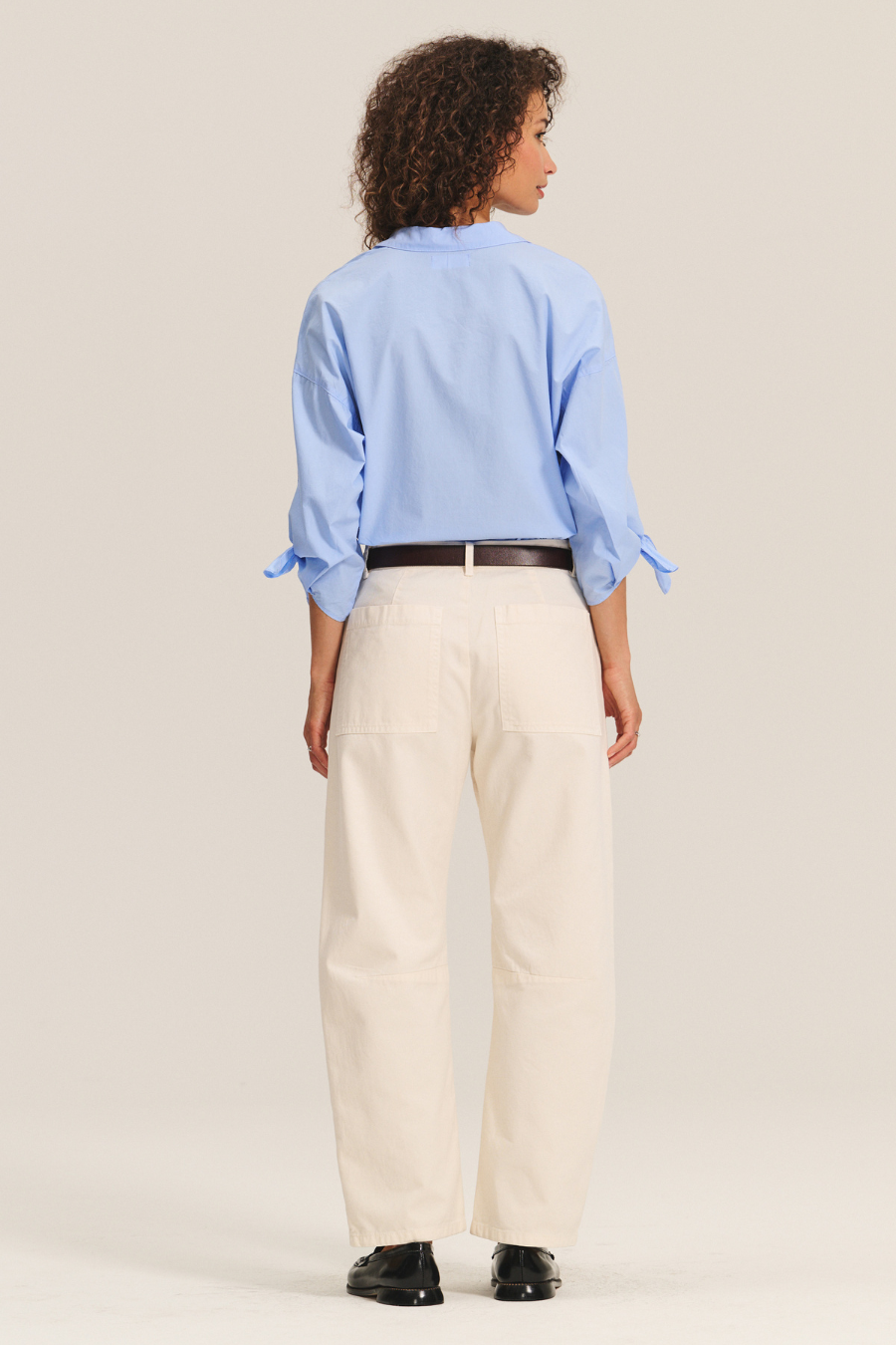 Crafted from a sturdy cotton twill, this casual trouser has a modern line with a subtle, vertical seam at the knee that lends a cool curved silhouette. Utilitarian-inspired patch pockets on the front and rear.