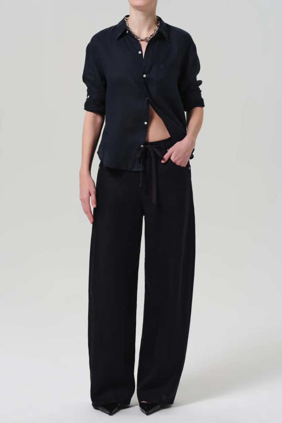 The Brynn Drawstring Trouser from Citizens of Humanity offers a relaxed fit with a comfortable drawstring waist, making it the perfect laid-back linen pant. Effortlessly stylish, this versatile trouser pairs beautifully with tonal linen pieces or a matching tank for a chic, coordinated look ideal for warm weather days and vacation-ready escapes.