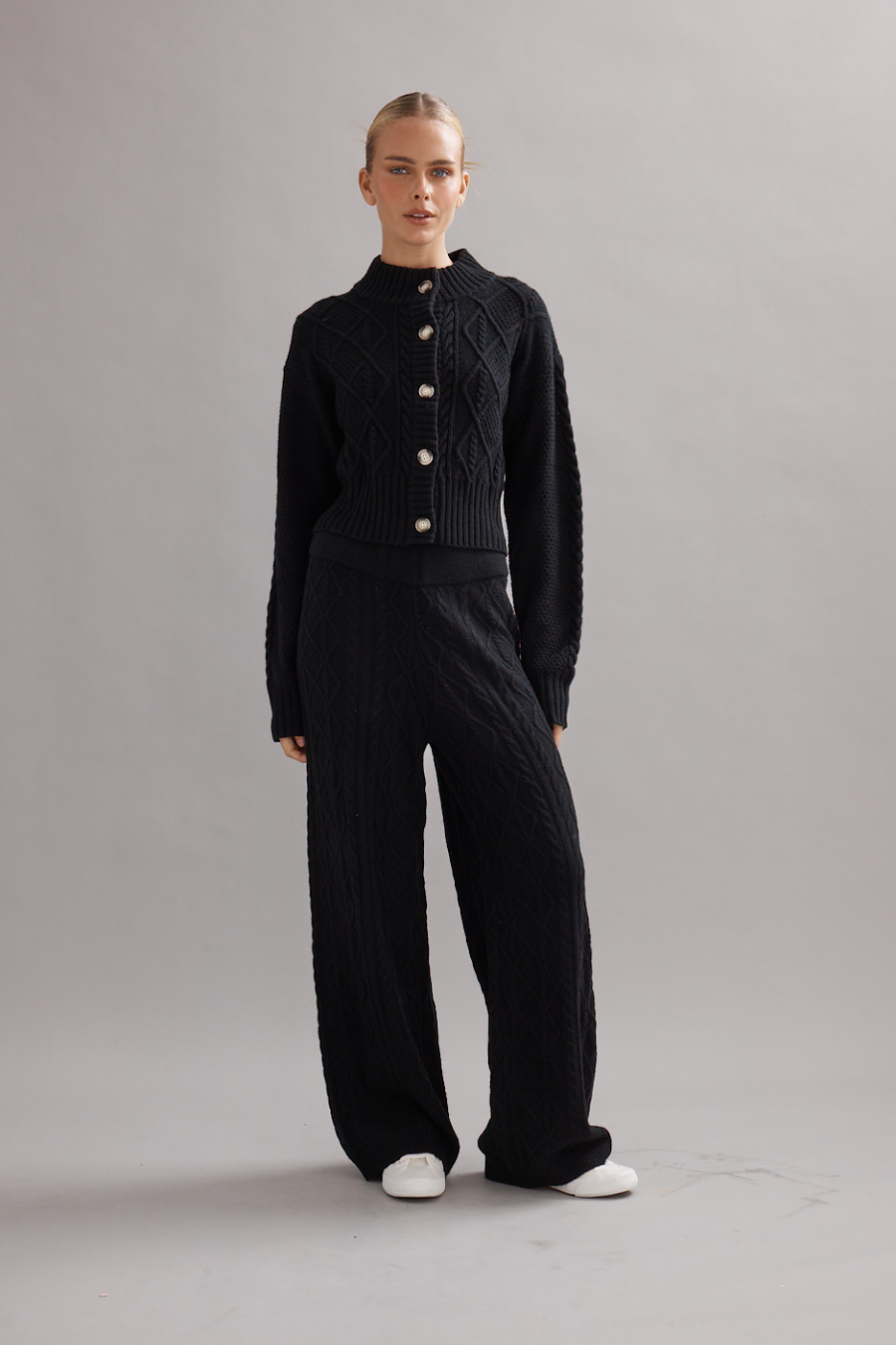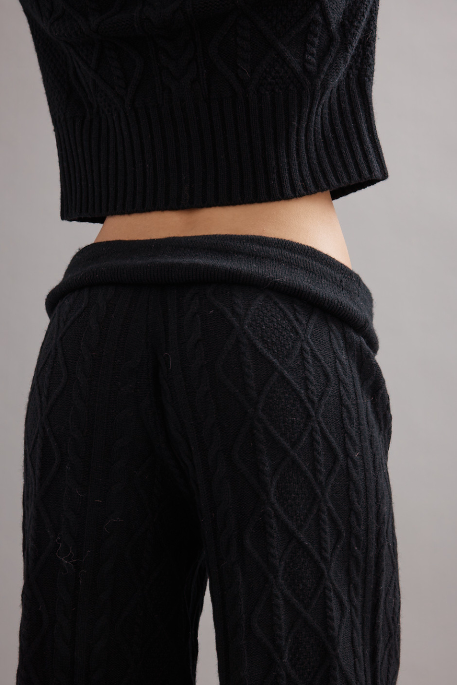 Cosy up this winter in our Cashmere knitwear. Designed for ultimate comfort and elevated lounging, our Cable Knit Pant blends relaxed elegance with refined texture. Crafted from a luxurious cashmere blend, these wide-leg pants feature an all-over cable knit, elasticated foldable waistband, and a draped silhouette that moves with you.
