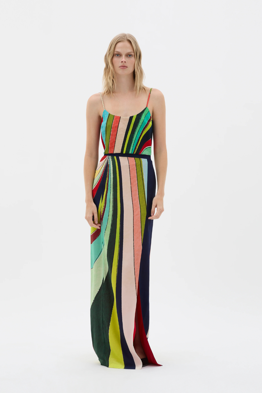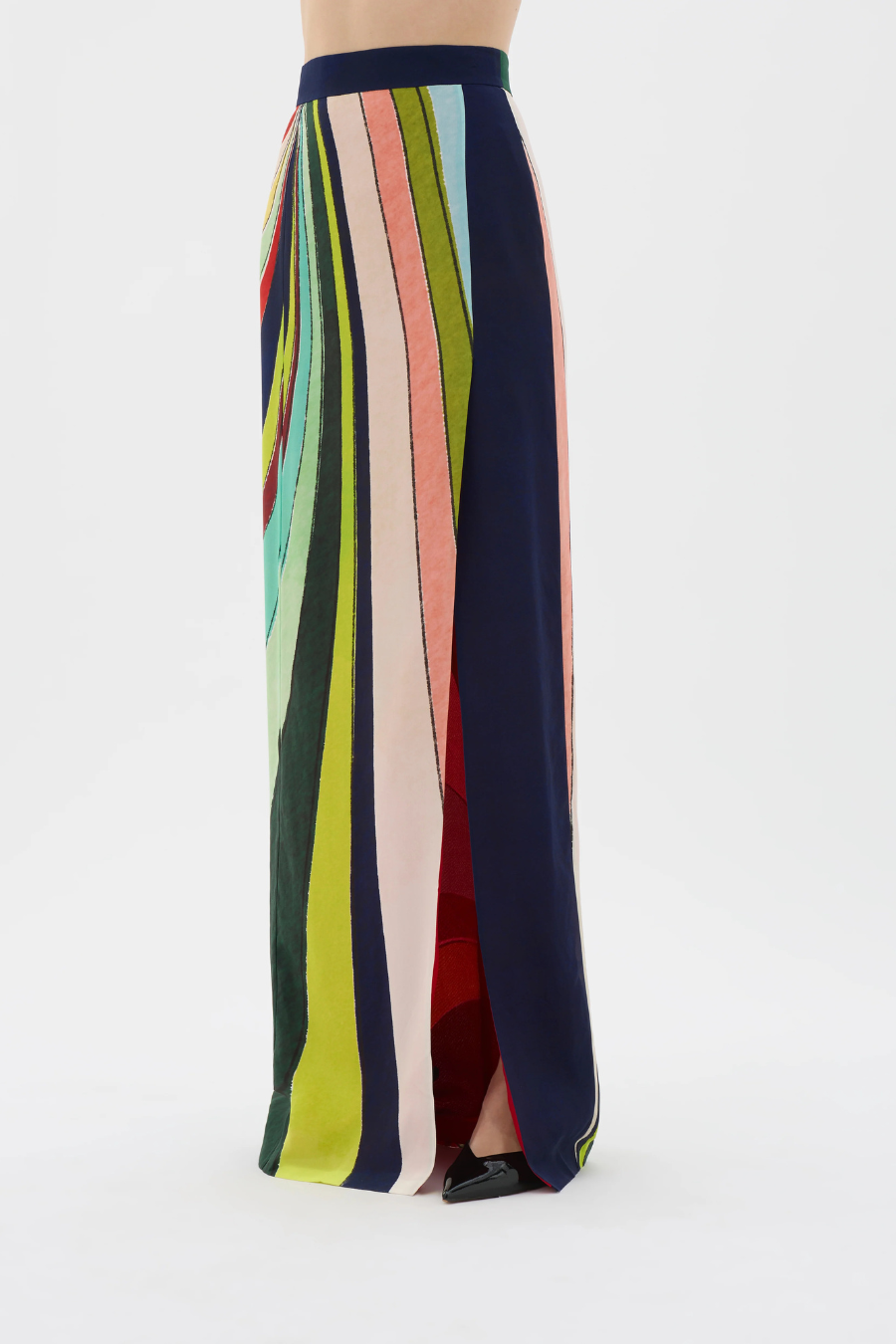 The Atlas Skirt is renewed in the Calmar Stripe in our latest edition of SS25. This tailored maxi skirt is an effortlessly elegant piece. A side slit adds movement and a hint of fun & flair, perfect for both day and evening looks. The high waist with a zip closure accentuates the figure, and the sleek tailoring ensures a flattering fit, while the classic striped makes it our newest statement & signature piece, ideal for those who love to make an entrance season, after season.