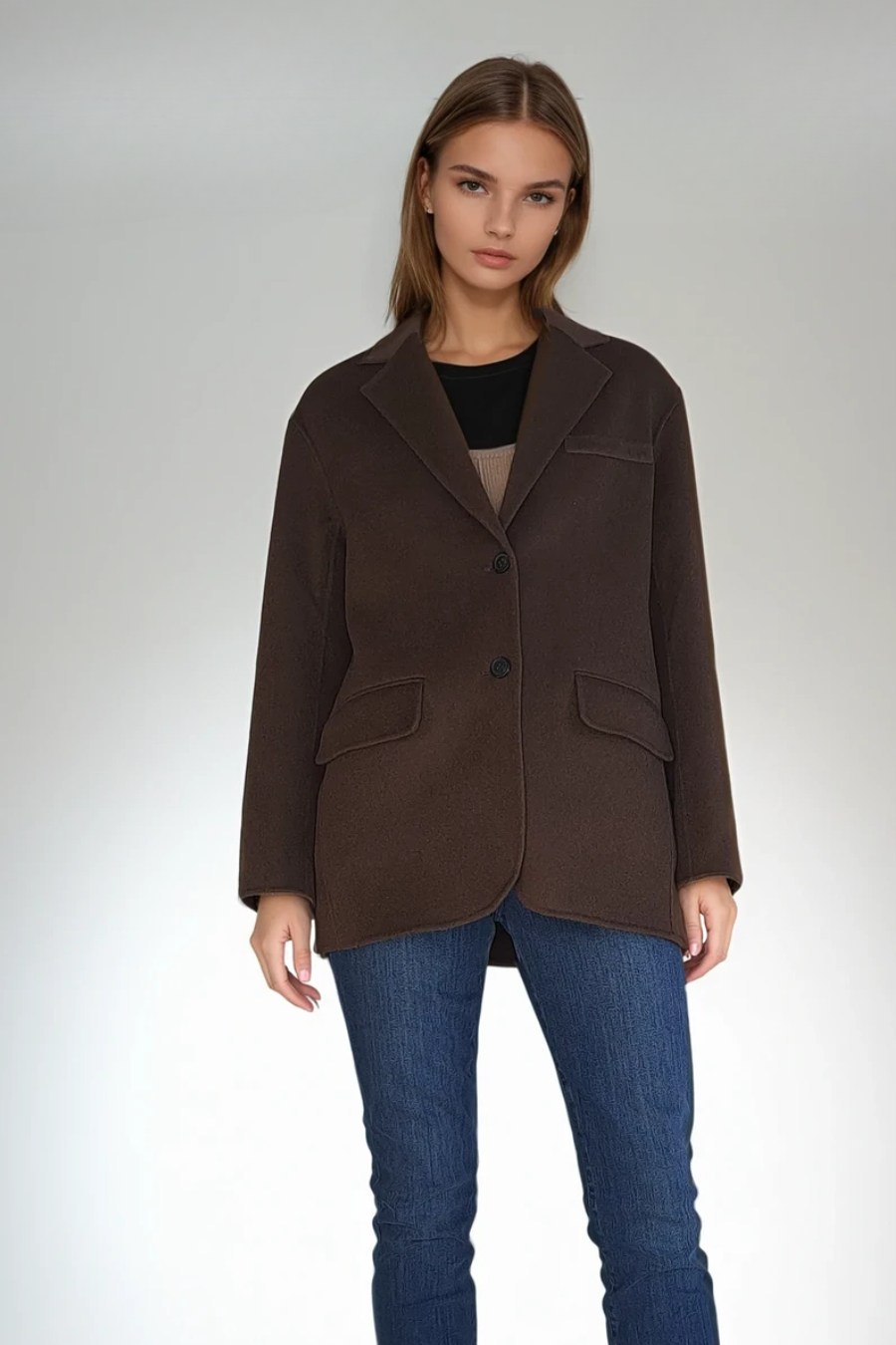 Tailored with ease in mind, the Camellia Wool Blazer brings refined structure to everyday dressing. Crafted from merino wool, it features a softly relaxed silhouette with sharp lapels, flap pockets, and a double-button closure. Lightweight yet cosy, it's designed to layer effortlessly over knits or a simple tee.