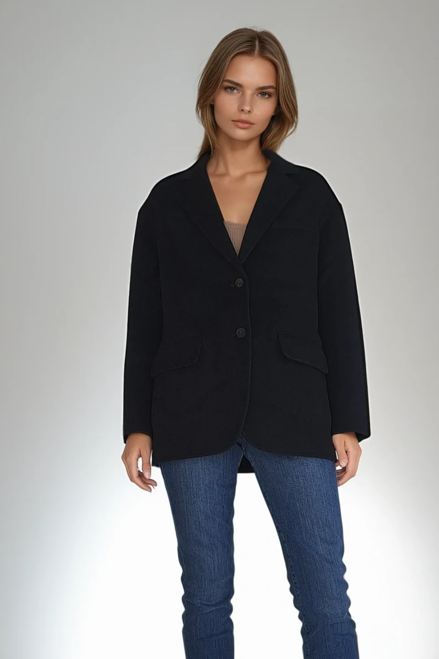 Tailored with ease in mind, the Camellia Wool Blazer brings refined structure to everyday dressing. Crafted from merino wool, it features a softly relaxed silhouette with sharp lapels, flap pockets, and a double-button closure. Lightweight yet cosy, it's designed to layer effortlessly over knits or a simple tee.