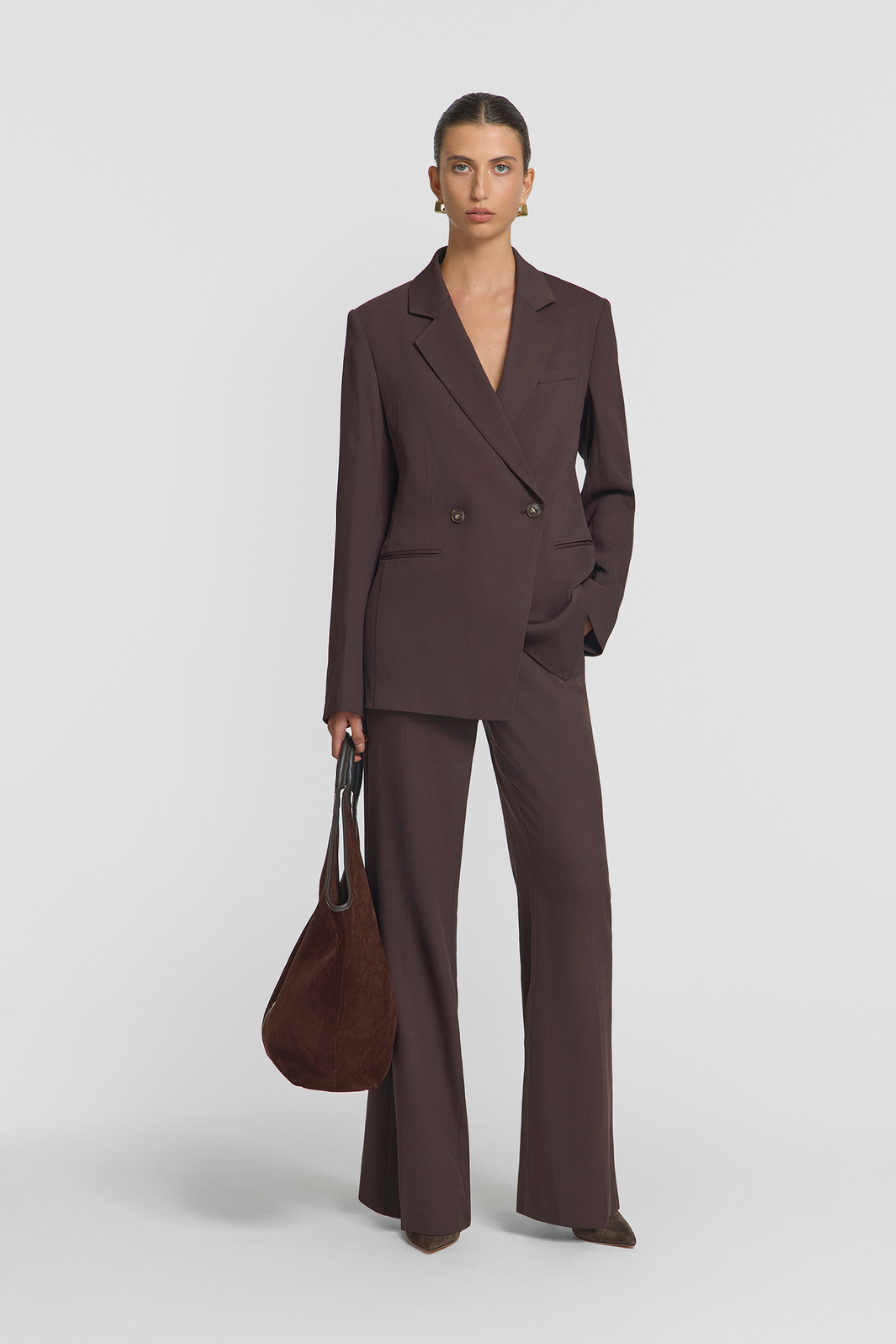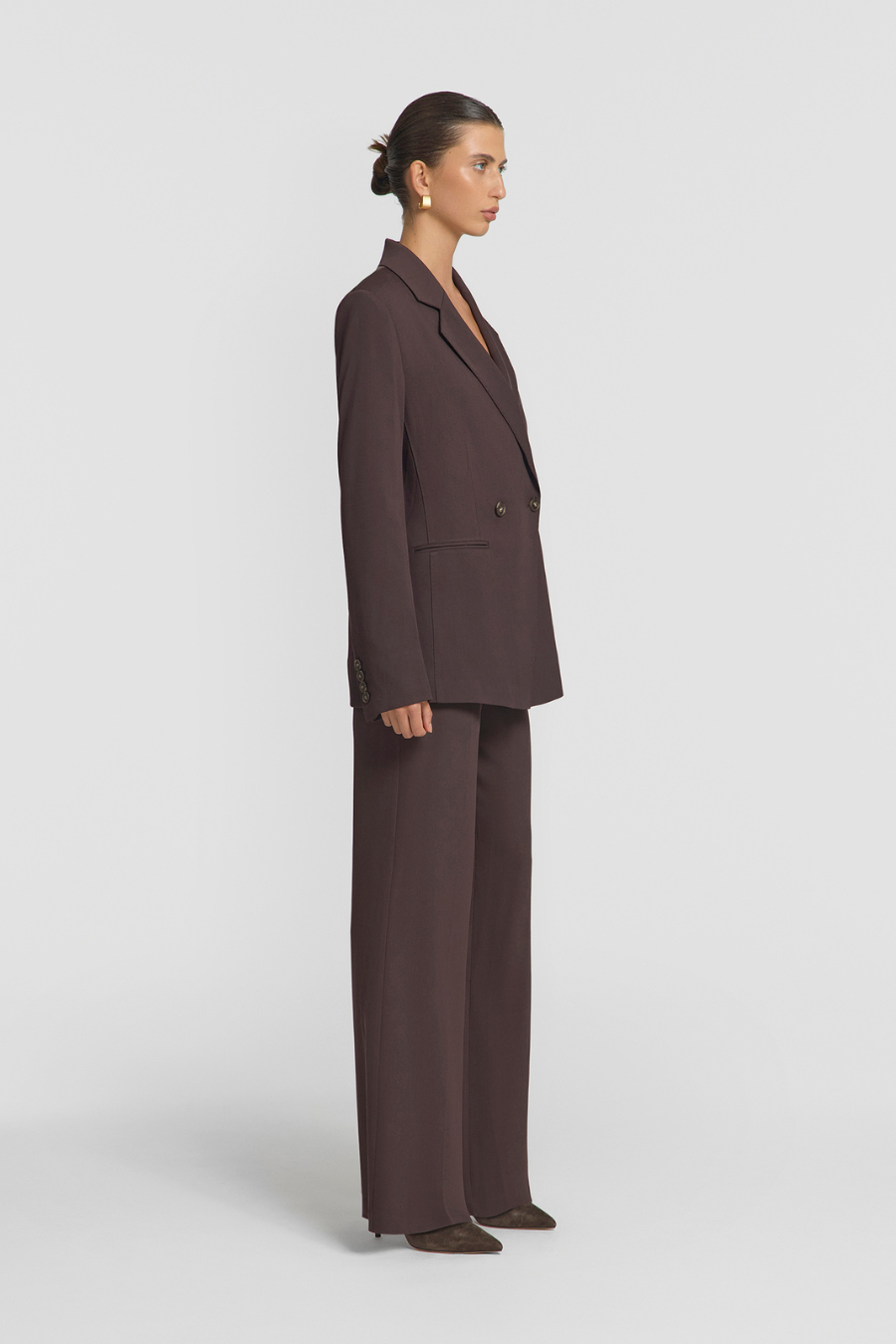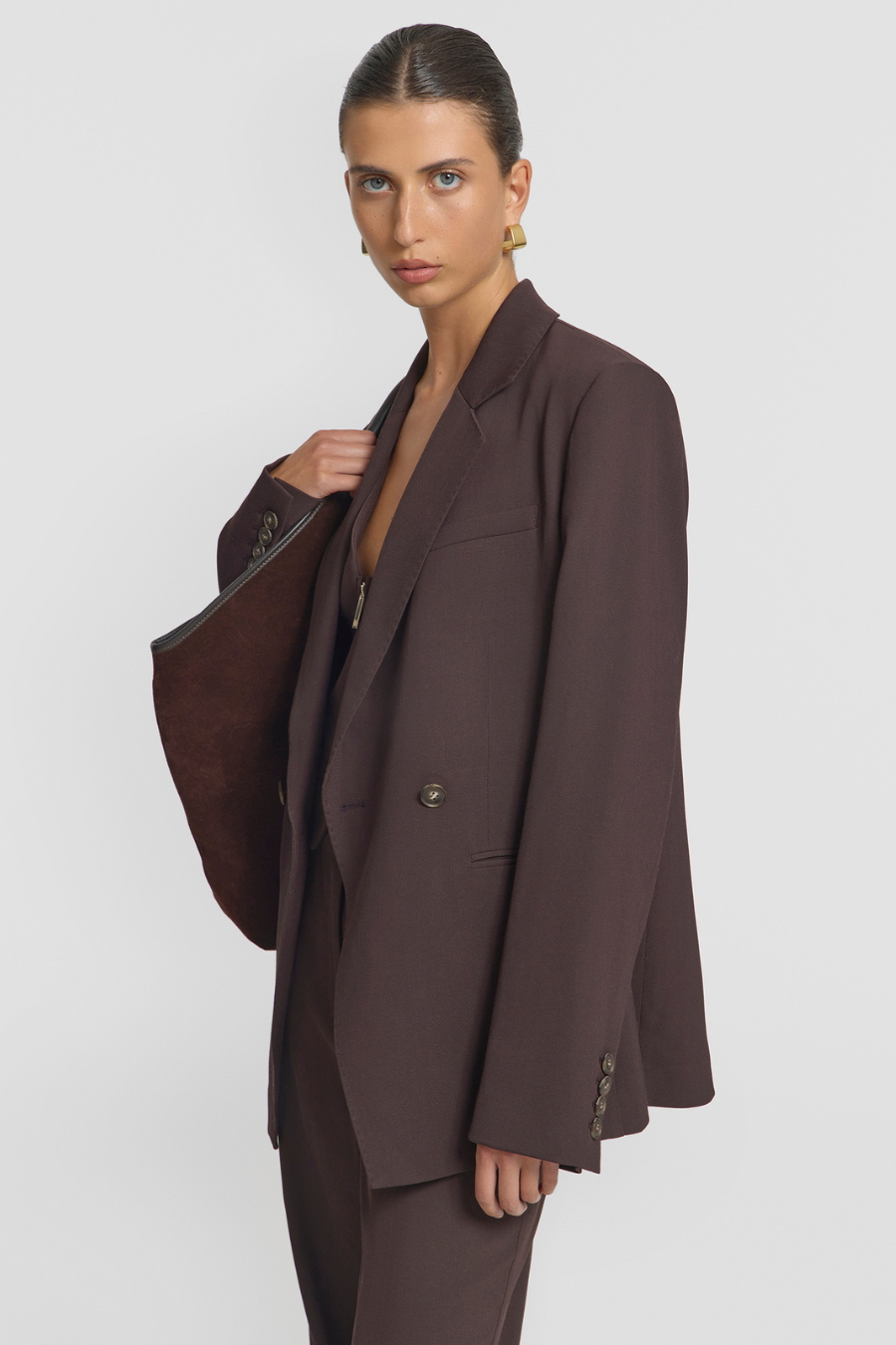 A refined take on modern suiting, the Captivate Blazer in Cocoa by Viktoria & Woods is tailored in a rich, warm-toned hue that elevates any wardrobe. Cut in a relaxed, double-breasted silhouette, it features sharp lapels, a structured shoulder, and subtle shaping through the waist for a flattering fit. This timeless blazer transitions effortlessly from work to weekend.