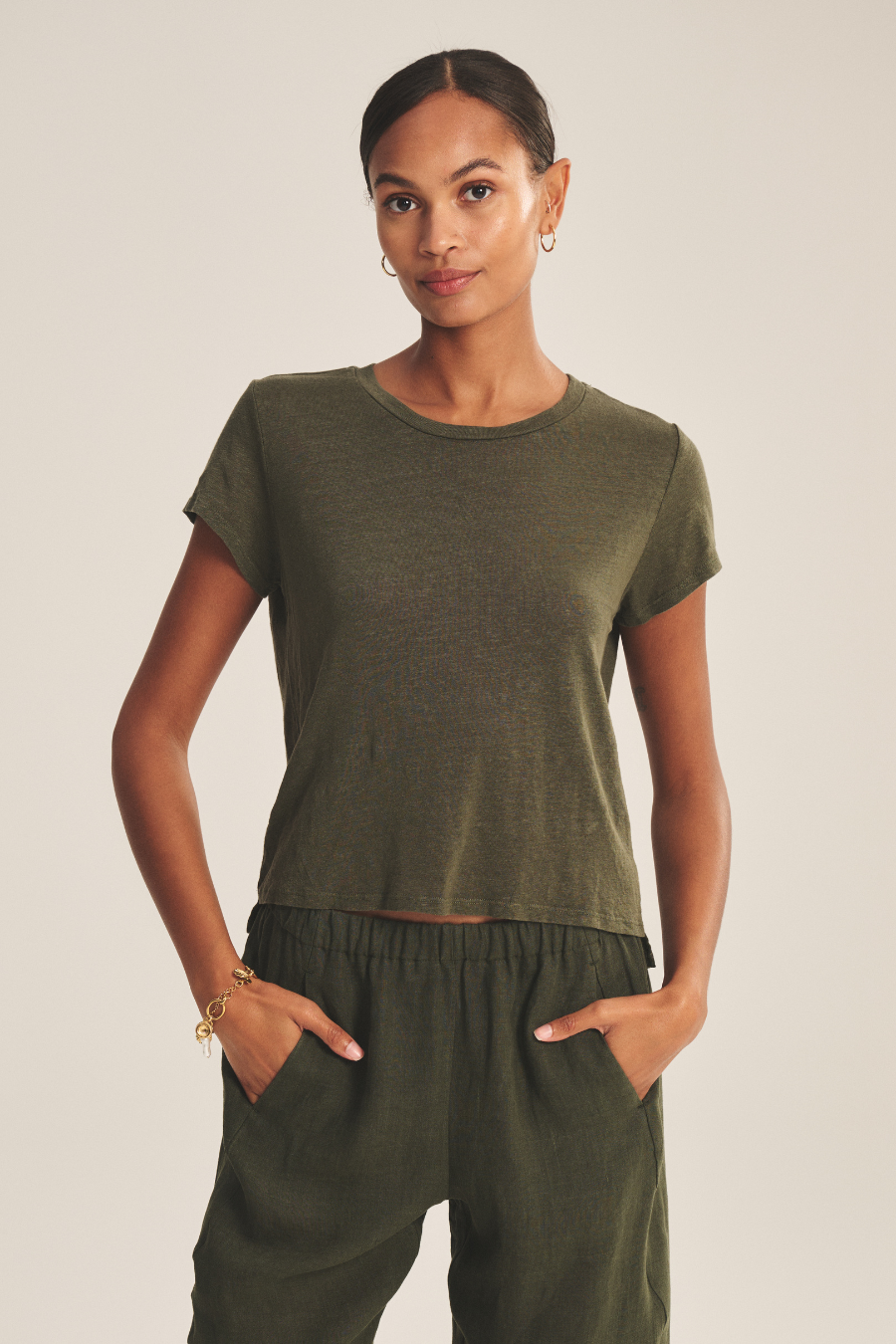 Just when you think a tee can’t get better we crafted this beauty. Featuring a linen knit, which has a flawless fit and feel (with just a hint of stretch) this is a new classic. This tee has a subtle high-low hemline and is a definite must-have.