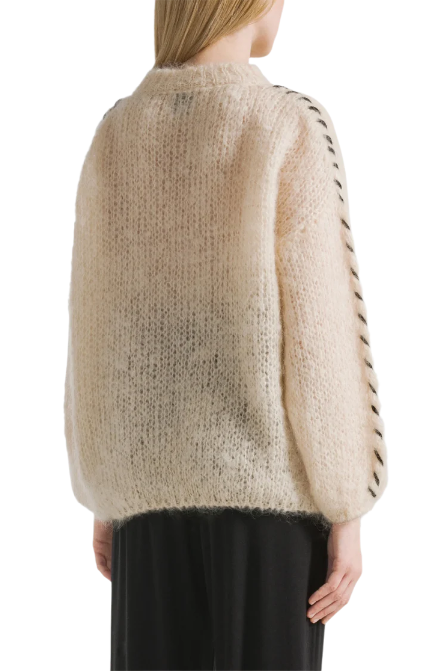 A luxurious blend of comfort and effortless style. Crafted from the finest mohair, this standout knit features wide woven threads along the sleeves and a relaxed dropped-shoulder silhouette for an elevated, laid-back look. It's the perfect piece to pair with denim, tailored pants, or layered over a slip dress for an easy, modern ensemble.
