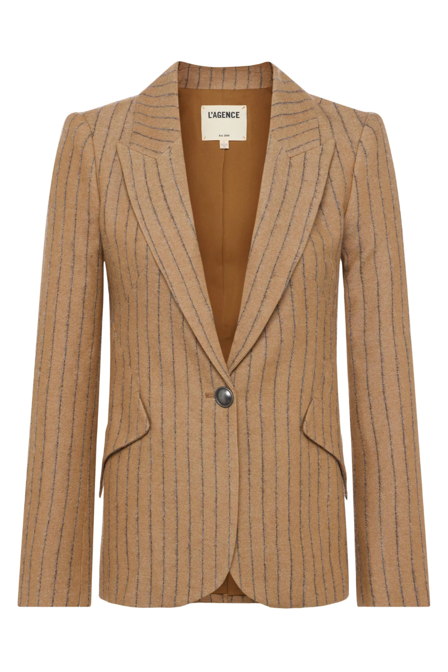 Our bestselling single-breasted blazer is now back in a cotton blend with a hint of wool, featuring a textured pinstripe.