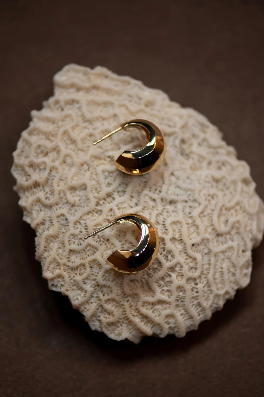 Cira is a small polished hoop that sits snug on the earlobe. She is a versatile and timeless little earring that brings joy and beauty to the wearer.