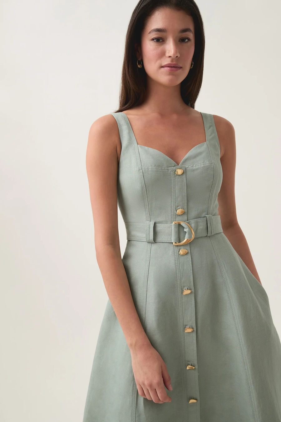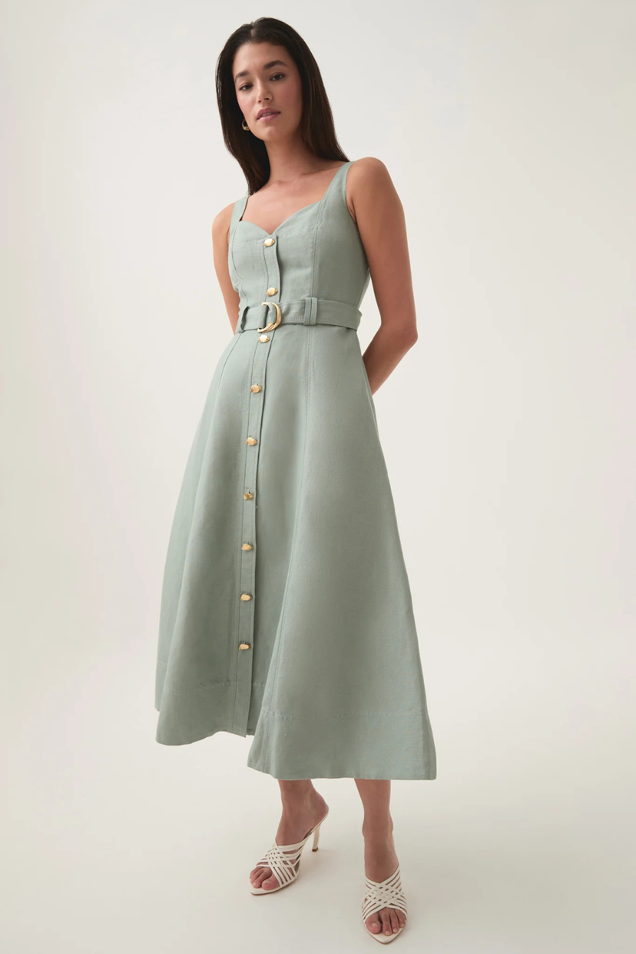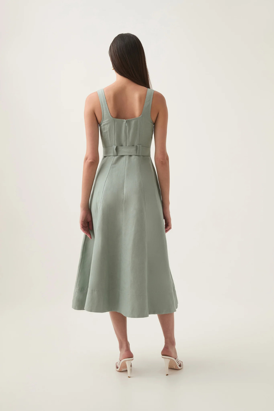Clay Belted Midi Dress Willow Green