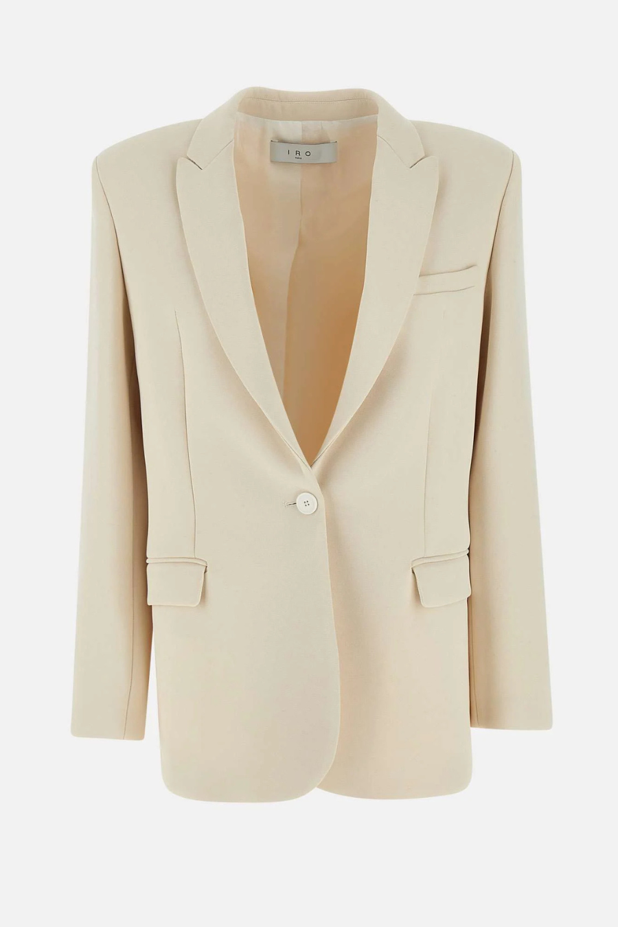 Iro “Clemence” women's crepe blazer, butter color, single-breasted closure with matching button, padded epaulettes, button cuffs, viscose blend lining, front flap pockets, breast pocket, center back vent, spear lapel collar, oversize fit