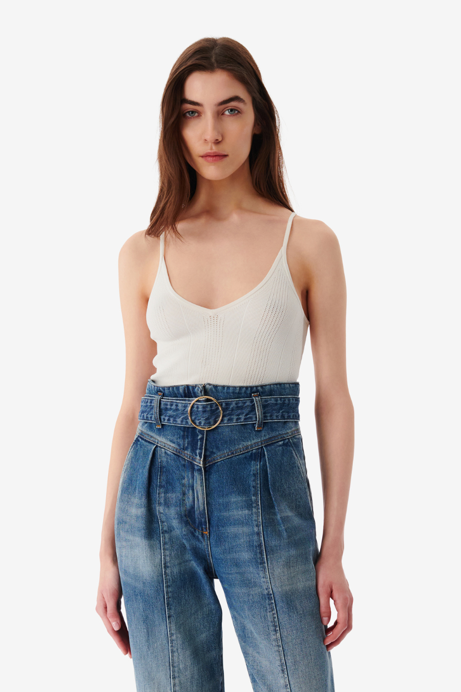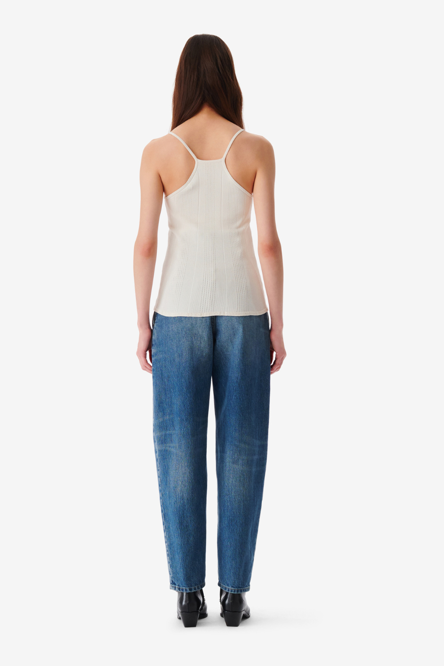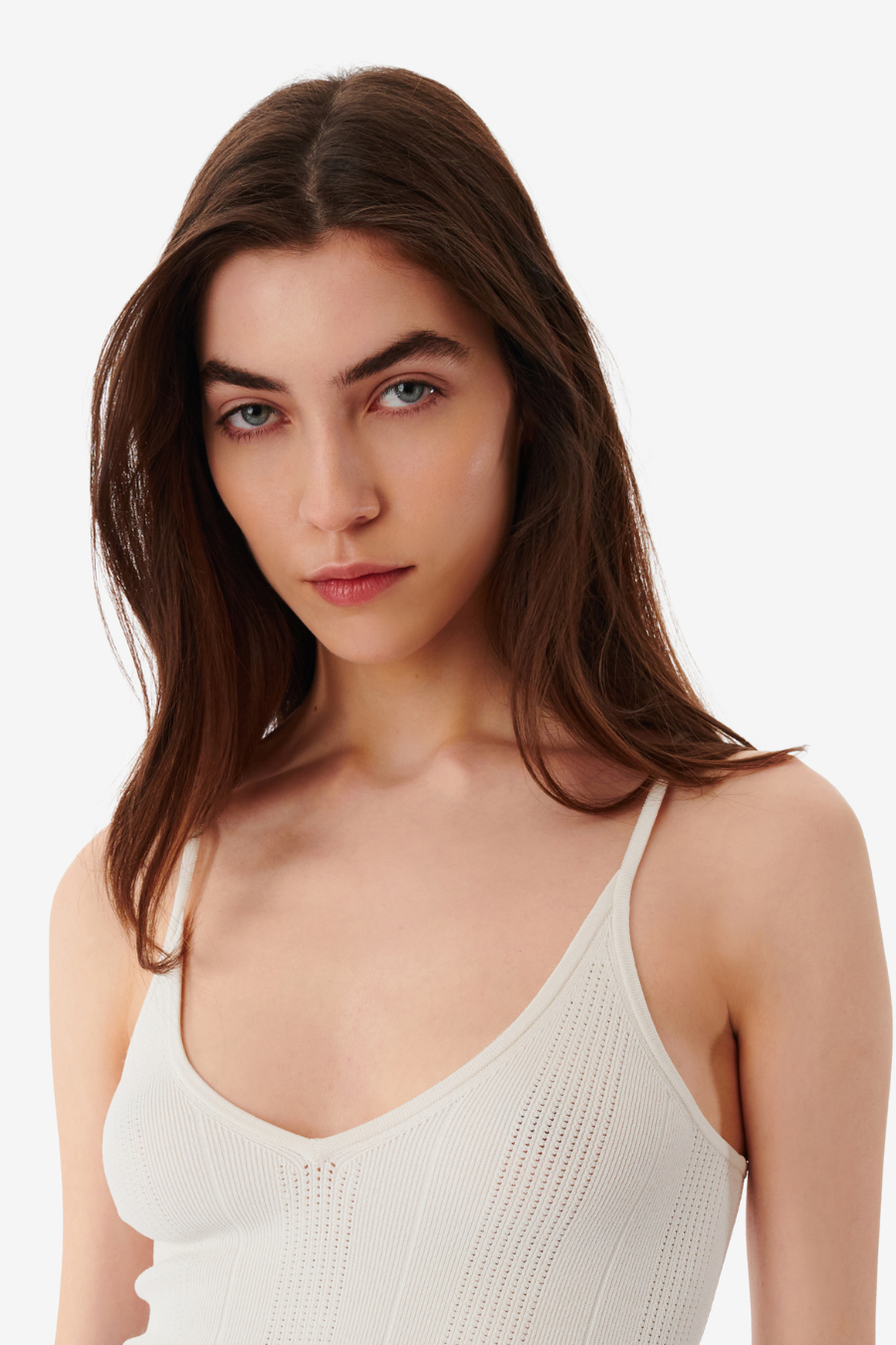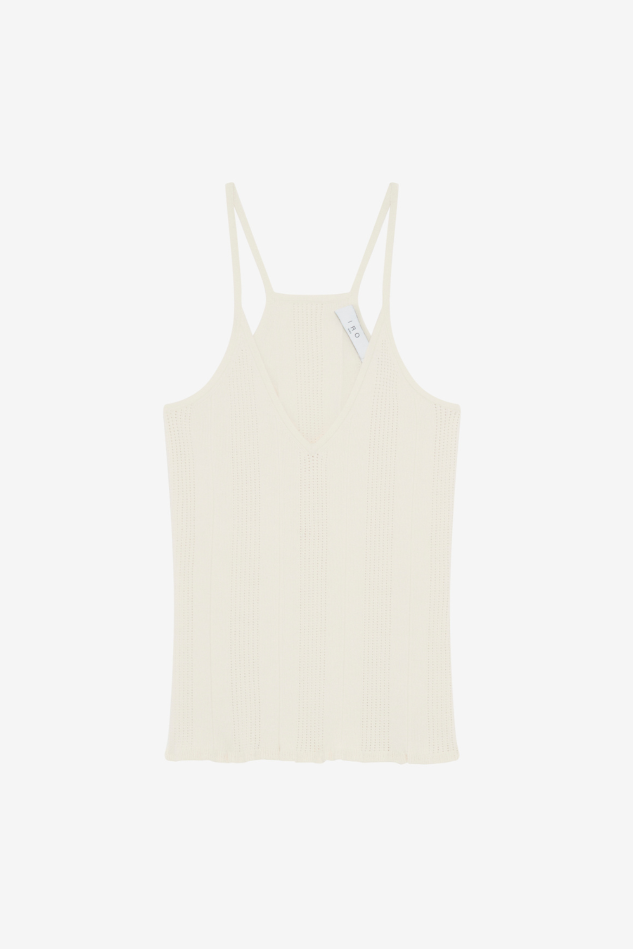 Small V Neck Tank Top, double straps, athletic armholes, all over visual pointelle stich, fitted style, regualr length