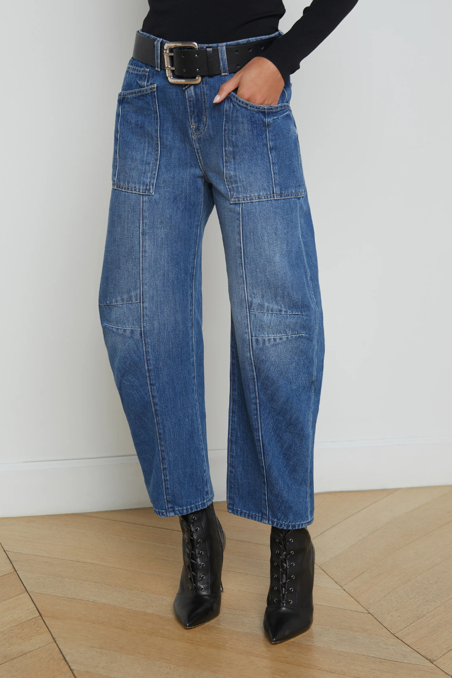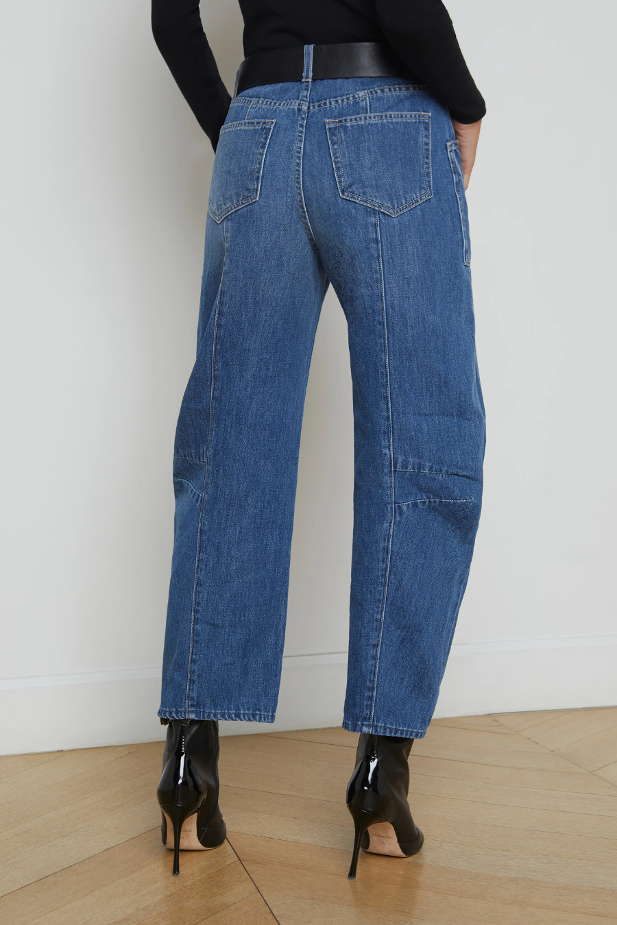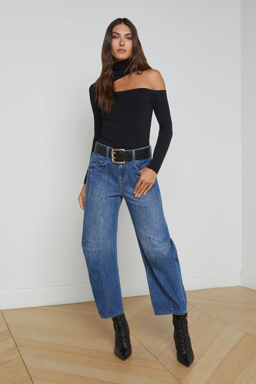 The L’AGENCE take on the barrel-leg jean features a slouch fit cut from incredibly soft denim, finished at a cropped length.