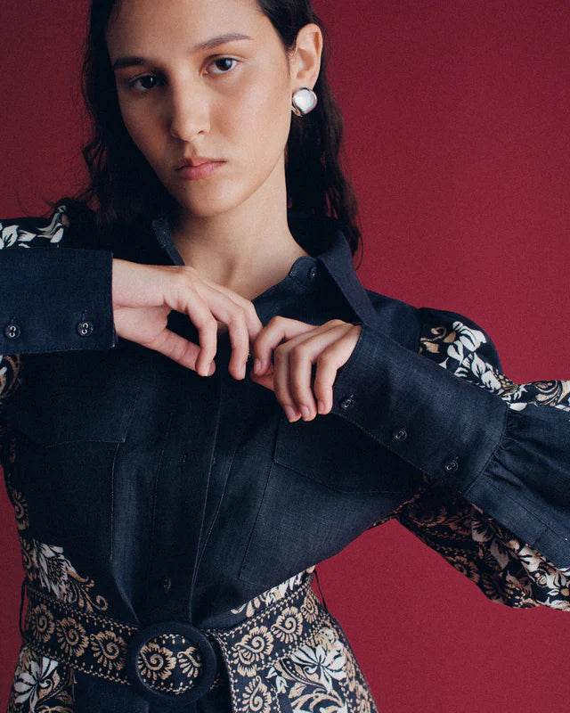 The Constance Linen Mini Dress is a fitted shirt dress with a belt to cinch in the silhouette. The dress has chest patch pockets and voluminous sleeves with a fitted cuff. Dress up or down the Constance Dress is a piece to take you through the seasons.
