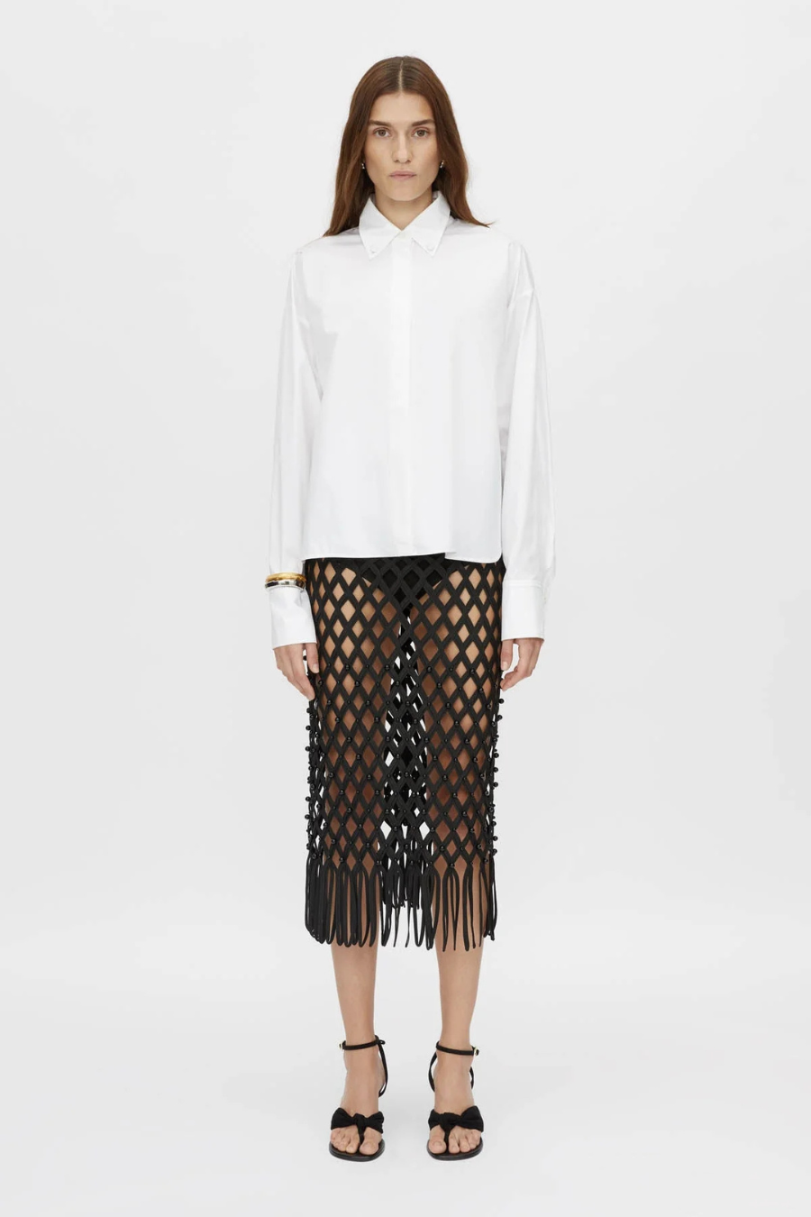 The Corbin Shirt is crafted from Australian cotton in a traditional shirting silhouette. This shirt features a hidden centre front placket with logo corozo buttons and a curved hem.