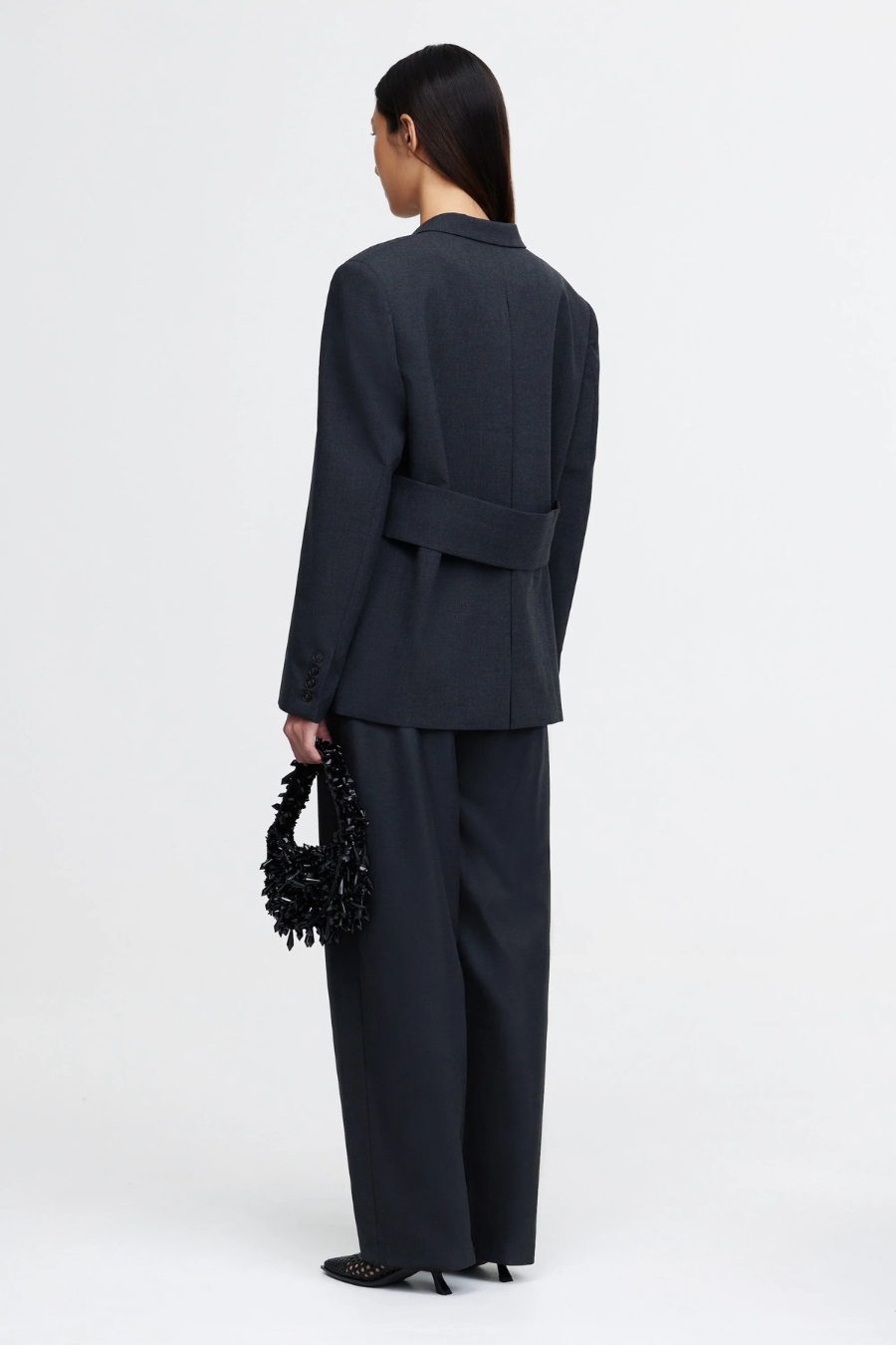 Introducing the Croxby Jacket in Charcoal, a refined take on modern tailoring. Designed with a boxy silhouette, this fully lined blazer features a clean front button closure, long sleeves, and functional front pockets for added versatility. A subtle back waistband panel detail adds structure, elevating the relaxed fit. Whether styled over tailored trousers or draped over a dress, this piece is a wardrobe essential for effortless sophistication.