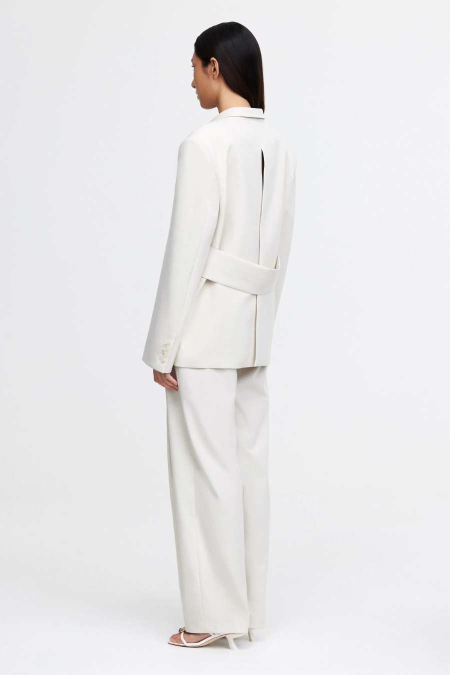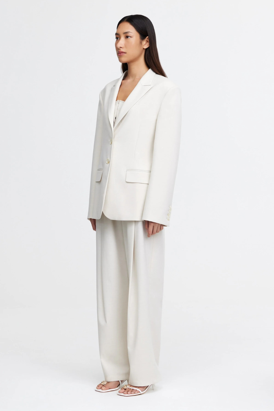Introducing the Croxby Jacket in Pearl, a refined take on modern tailoring. Designed with a boxy silhouette, this fully lined blazer features a clean front button closure, long sleeves, and functional front pockets for added versatility. A subtle back waistband panel detail adds structure, elevating the relaxed fit. Whether styled over tailored trousers or draped over a dress, this piece is a wardrobe essential for effortless sophistication.