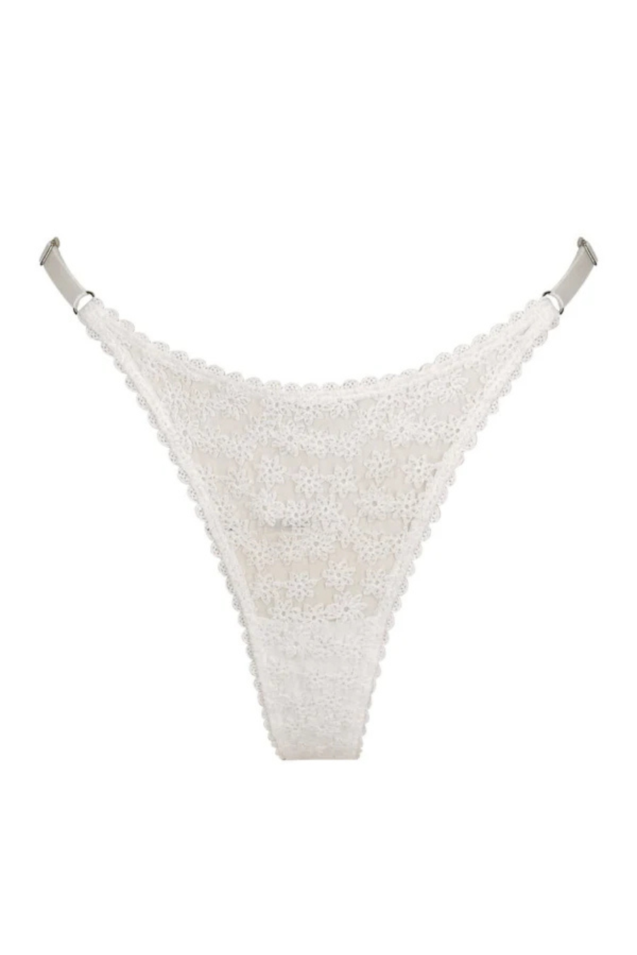 Daisy's in full bloom, delicately embroidered in soft floral lace with a dainty flower trim. Featuring an adjustable waistband and power mesh lining for comfort, flexibility and a beautifully romantic fit.