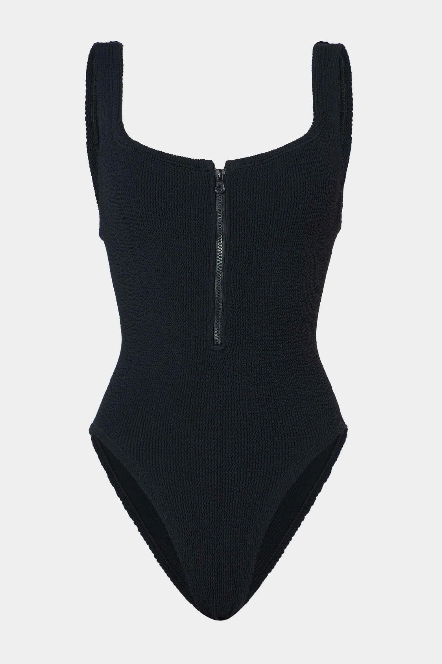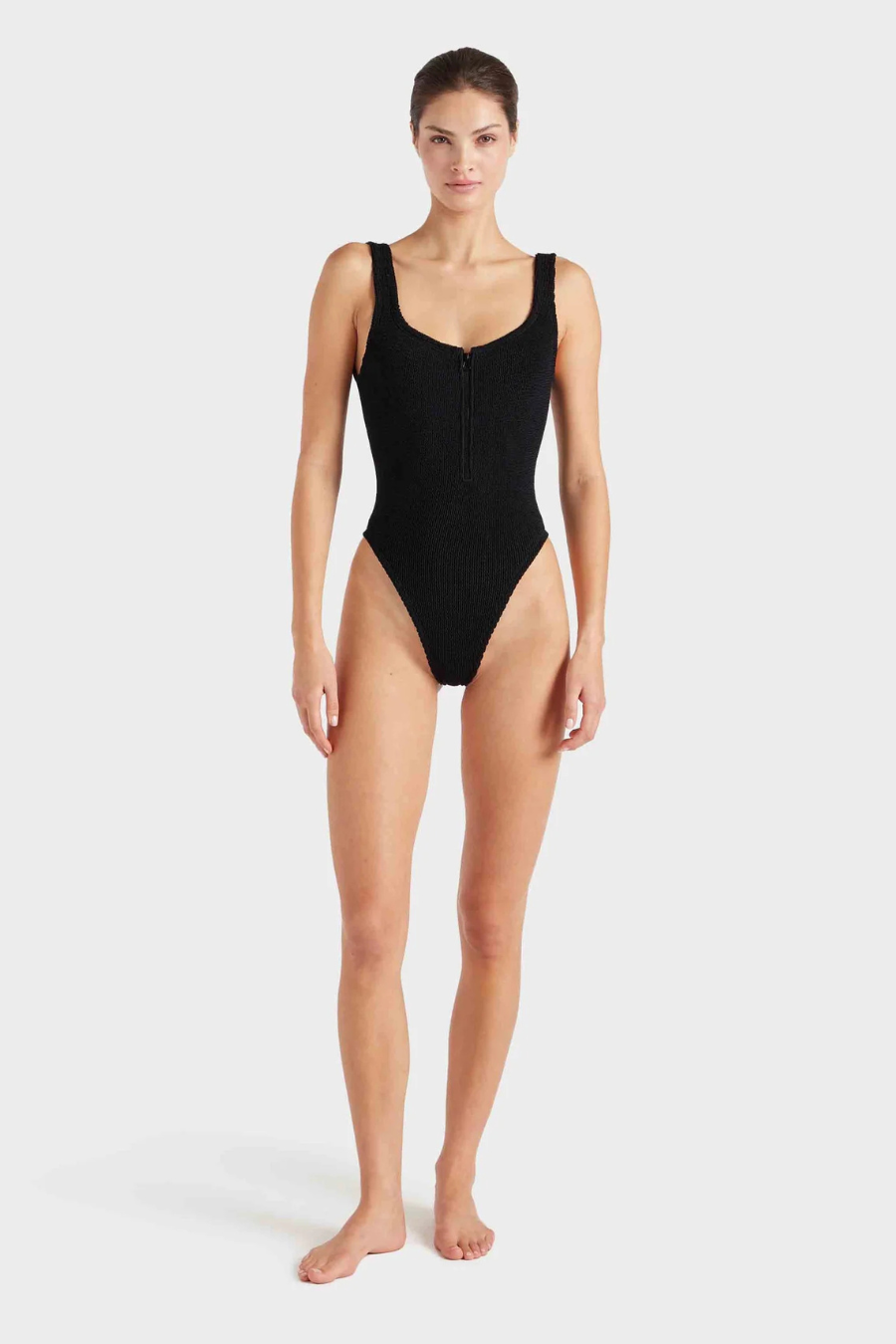 Brought back from the Hunza G 90s archives, the Dallas swim features a daring zip front, square neckline, and scooped back – in our iconic Original Crinkle™ fabrication.