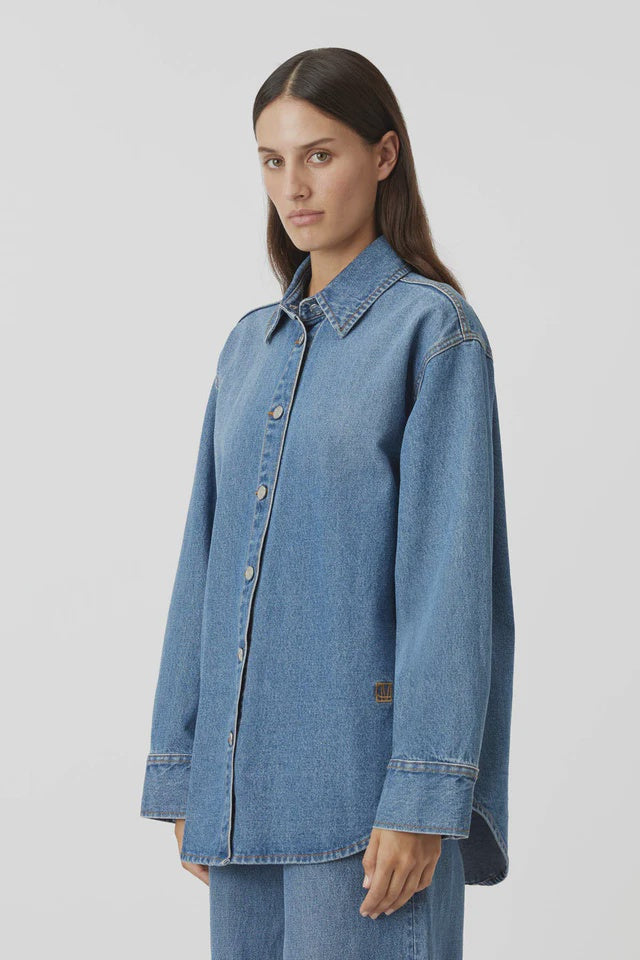 The Dalton Denim Shirt is crafted from premium denim in an oversized fit, ensuring both comfort and a fashion-forward look. The classic blue wash adds a vintage element creating a worn-in and casual appeal. This shirt is finished with an embroidered CAMILLA AND MARC monogram on the wearers left side to elevate the final design.